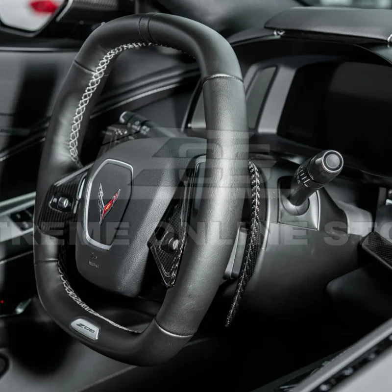 EOS 2020-2026 Corvette C8 Dry Carbon Fiber Steering Wheel Paddle Shifters Replacement