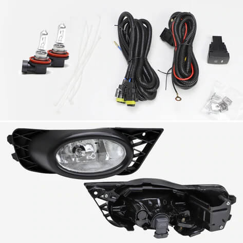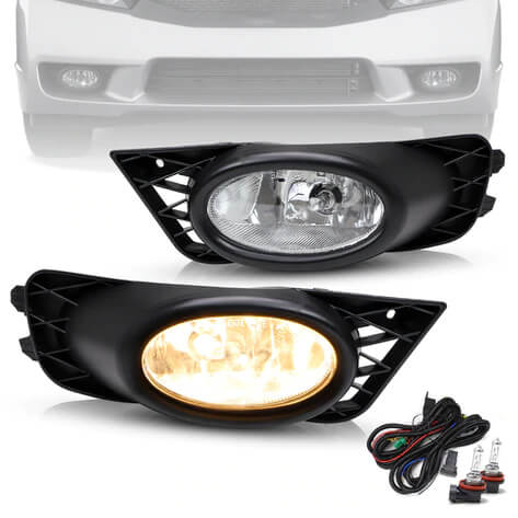 09-11 Honda Civic Sedan 8th Gen Vland Bumper Fog Lights Lamps Clear Lens w/ Bezel+Switch (Bulbs Included)