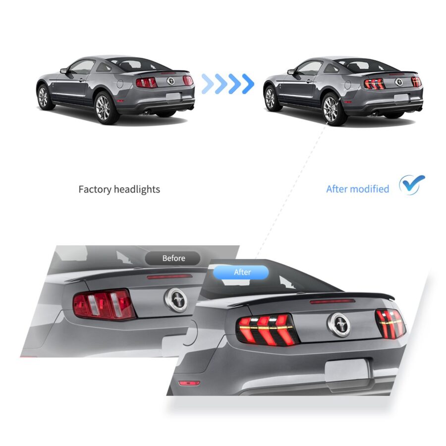 10-12 Mustang 5th Gen (S-197 II) Pre-Facelift Vland Tail Lights With Amber Sequential Turn Signal Smoked