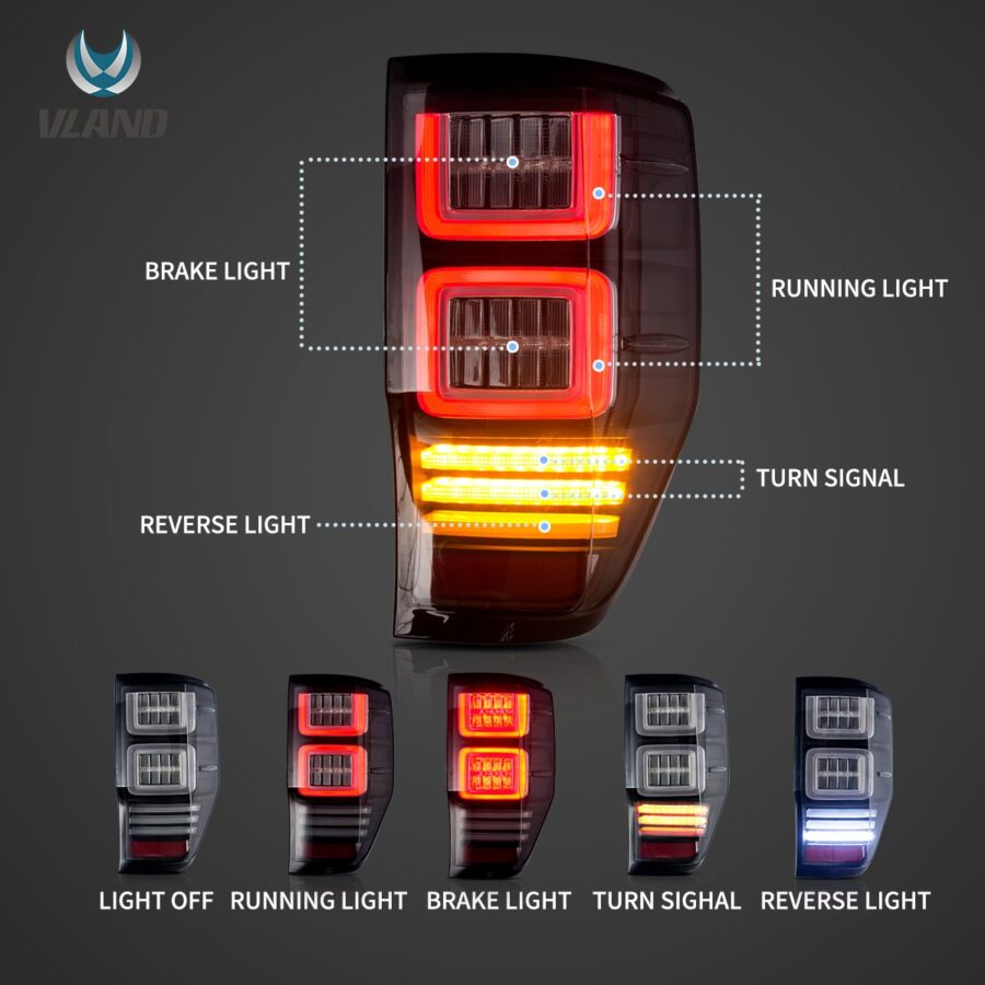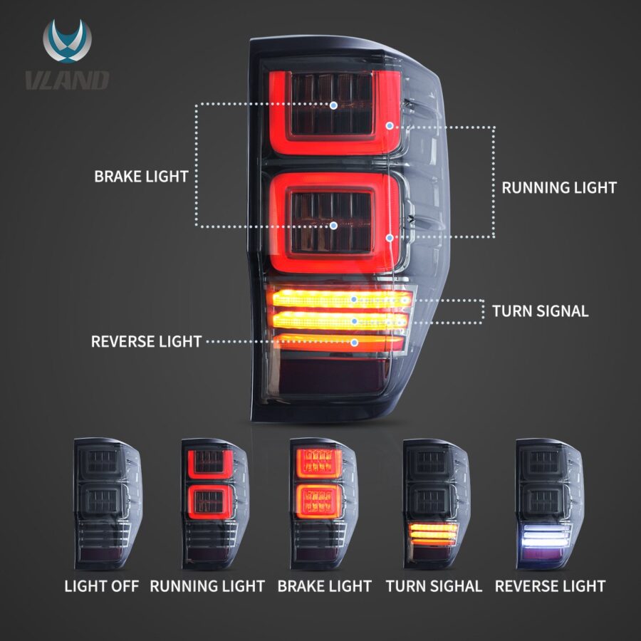 12-22 Ford Ranger 1th Gen (T6/P375) Vland LED Tail Lights With Sequential Turn Signal (Not Fit For US Models)
