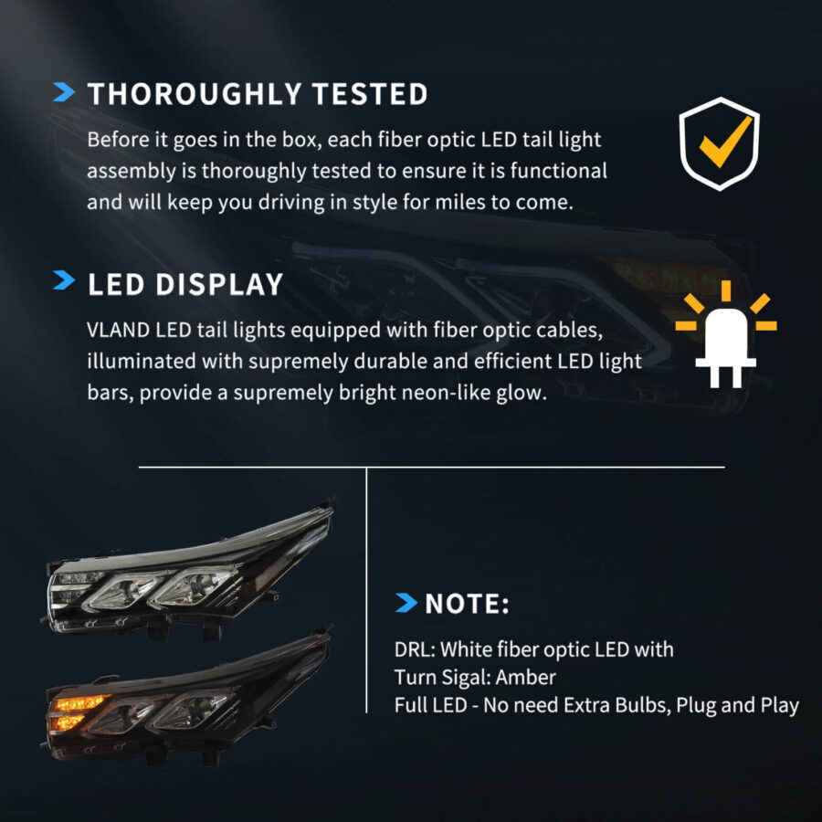 Compared to halogen or xenon lamps, VLAND LED dual-light lenses to provide more than 3 times better illumination, which increases the brightness of the headlights and covers a wider irradiated area.