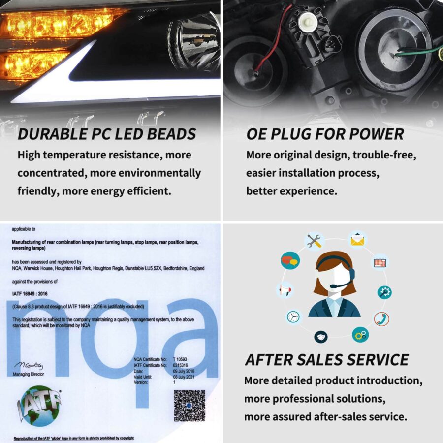 Our factory has American DOT, European E-Mark, and Chinese CCC certification to assure product quality. In terms of appearance, we have the appearance and design patents of our car lights. As for production capacity, our factory has IATF 16949 auto parts production management system and ISO 9001 quality management system certification standards.
