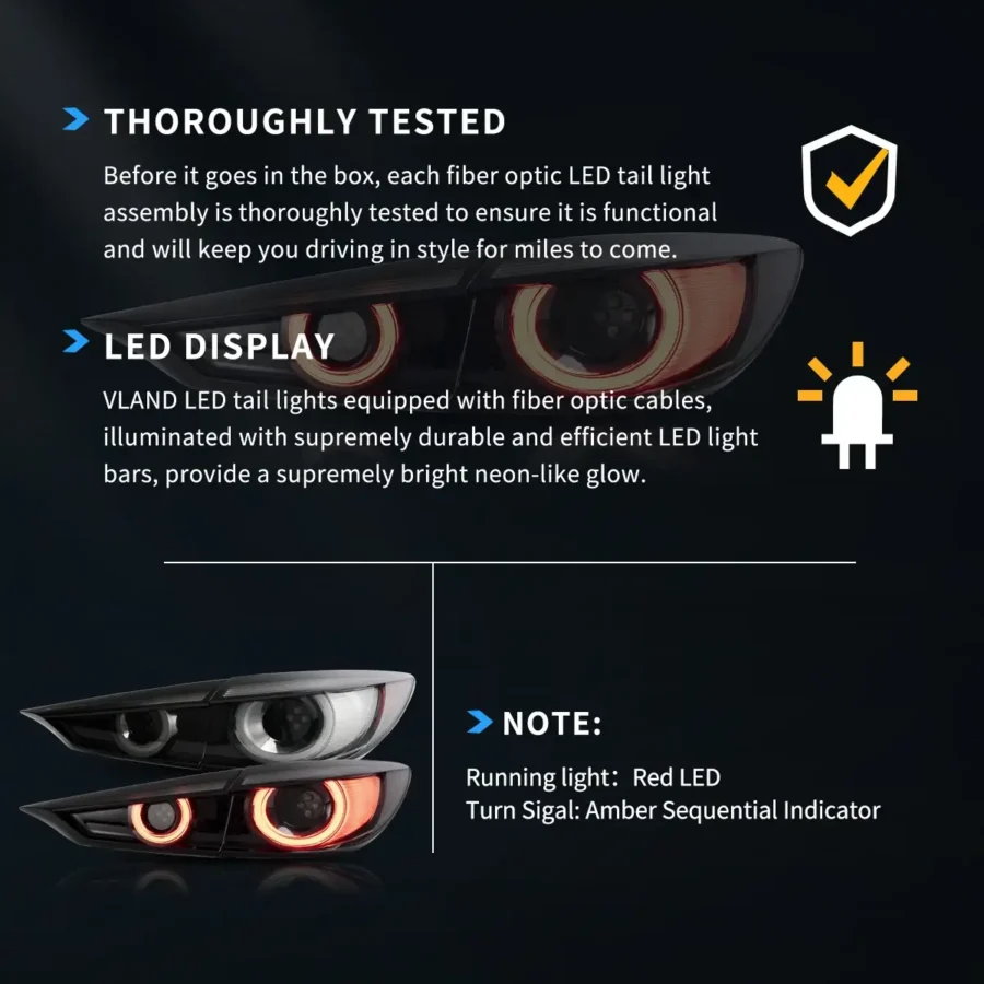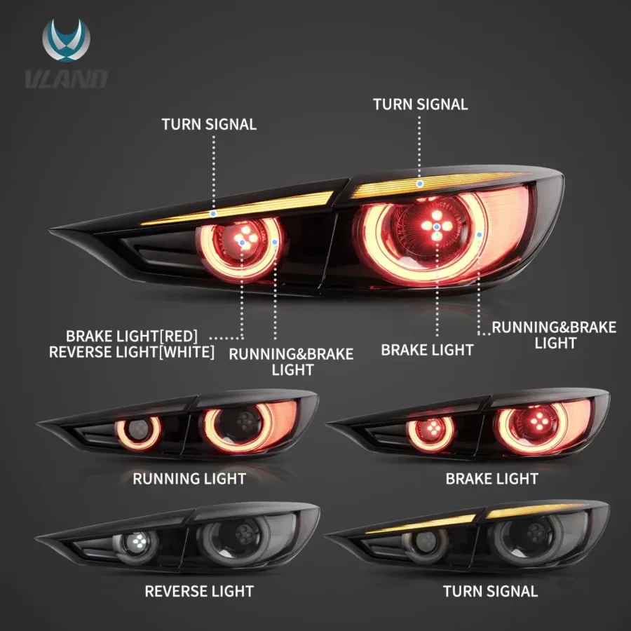VLAND 14-18 Mazda3 Axela 3th Gen(BM,BN) Sedan Vland LED Tail Lights With Dynamic Welcome Lighting Smoked