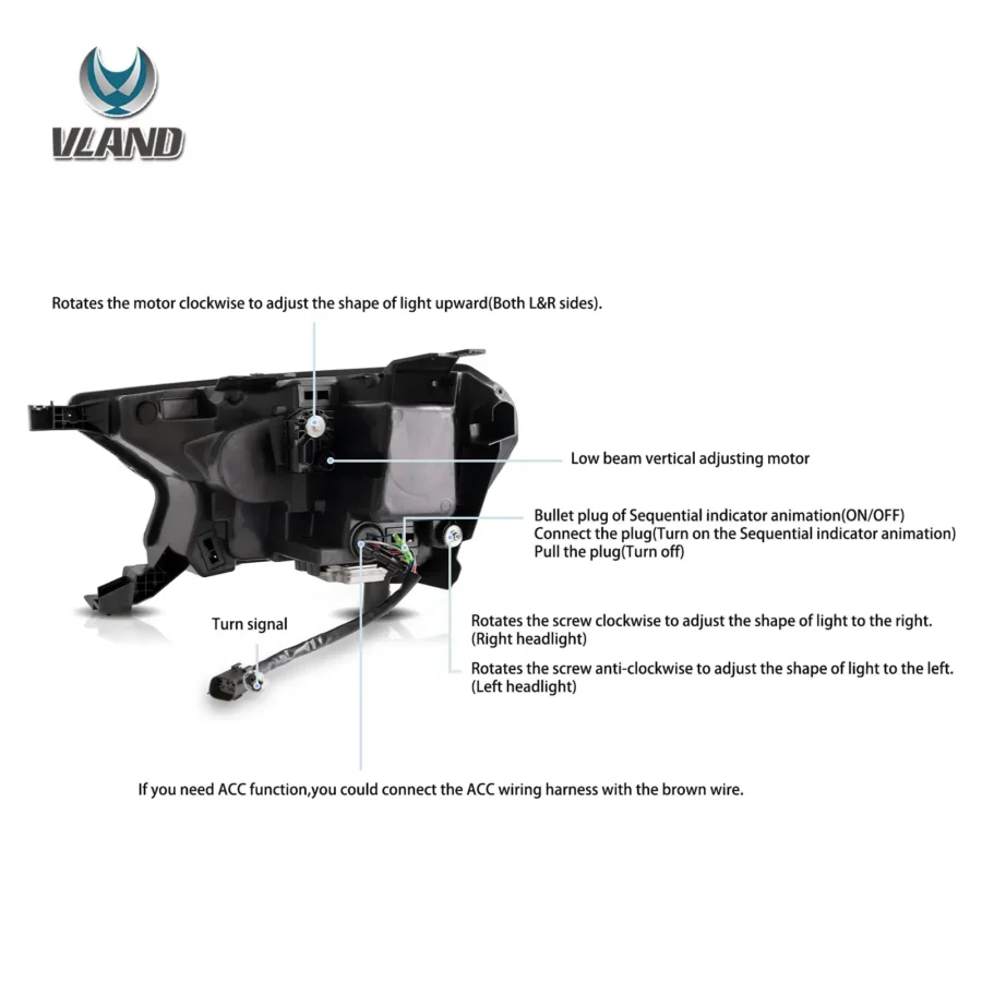 VLAND 15-21 Ford Ranger [International Types] Facelift Vland LED Matrix Projector HeadLights Black