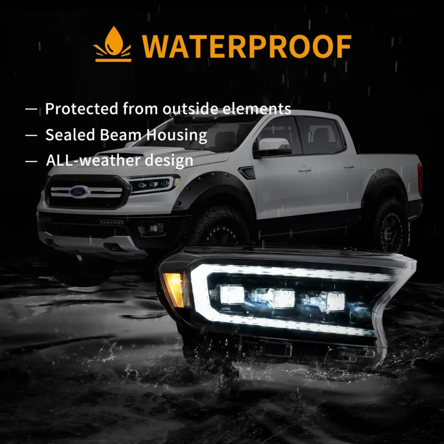 Vland 2015-2021 Ford Ranger [International Types] Facelift LED Matrix Projector Headlights Black