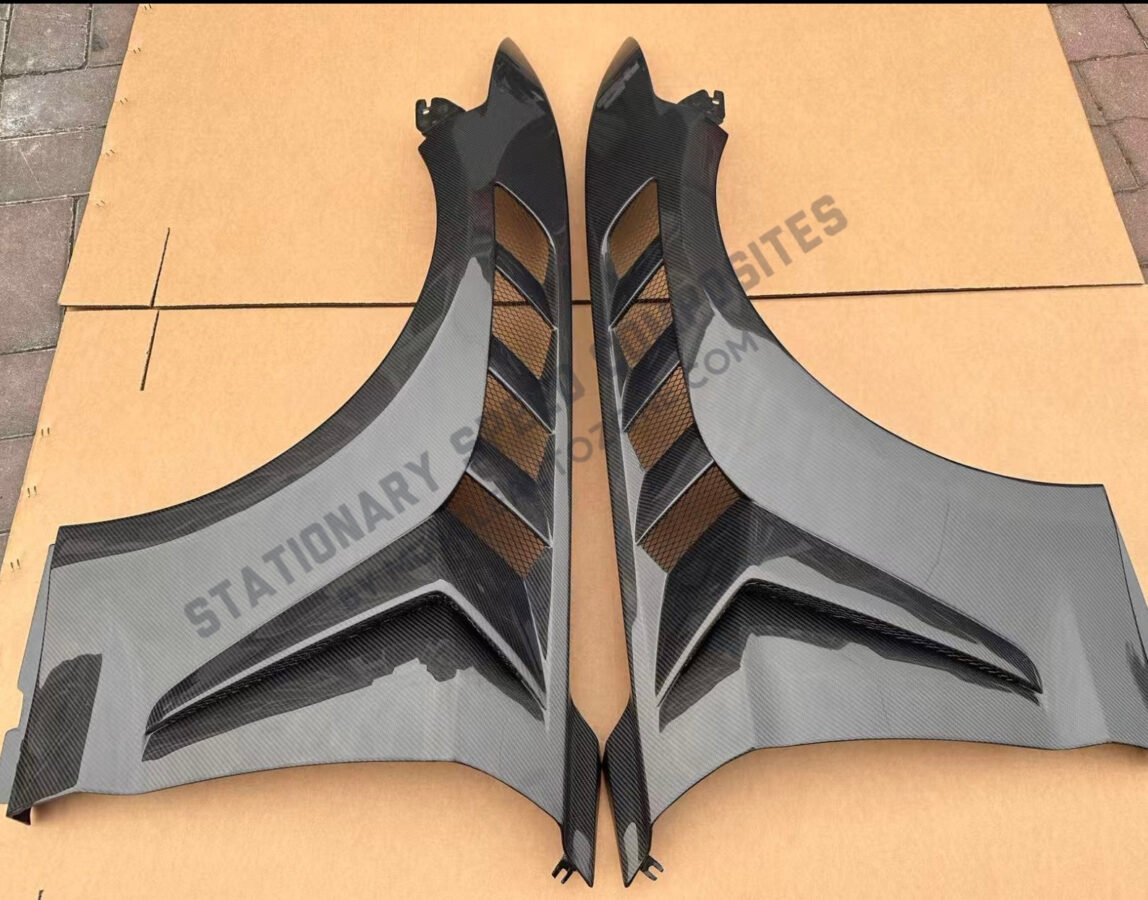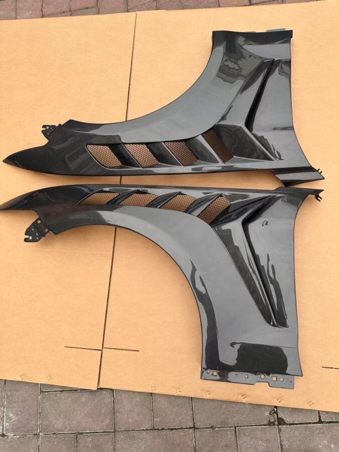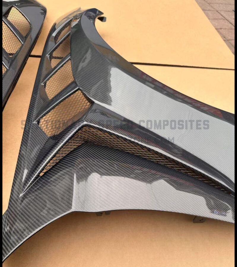 Upgrade your 2015-2017 Mustang with GTD Fenders, featuring an aggressive style inspired by the GTD and GT350 for the perfect balance of performance and aesthetics. Made with 2×2 twill 3K carbon fiber and vacuum-infused resin, these fenders ensure both lightweight strength and precise fitment for seamless integration.