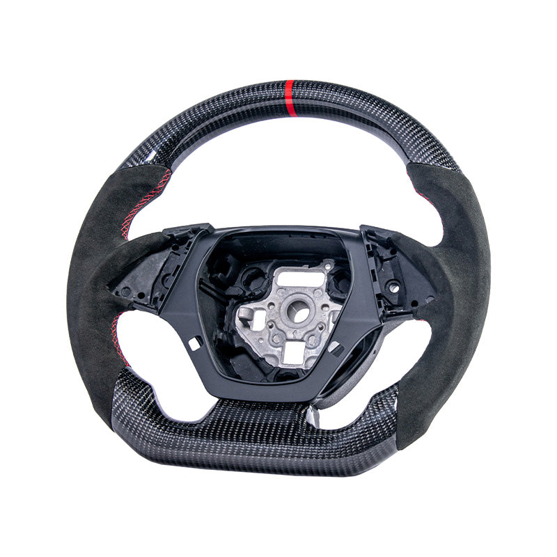 Upgrade your 2016–2024 Chevrolet Camaro with the 2016-2024 CAMARO CARBON FIBER Black Alcantara Red Stripe Steering Wheel. Constructed from carbon fiber with a carbon fiber finish, this steering wheel delivers an aggressive motorsport look with exceptional build quality. Designed for a direct fit using factory mounting points and included hardware for precise, gap-free installation.