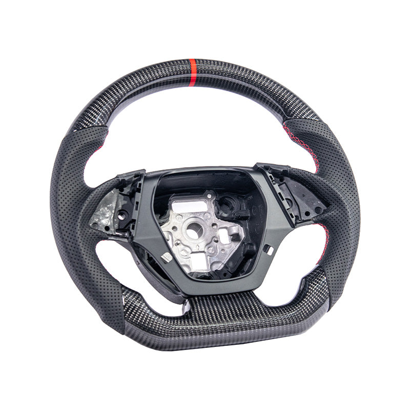 Upgrade your 2016–2024 Chevrolet Camaro with the 2016-2024 CAMARO CARBON FIBER Perforated Leather Red Stripe Steering Wheel. Constructed from carbon fiber with a carbon fiber finish, this steering wheel delivers an aggressive motorsport look with exceptional build quality. Designed for a direct fit using factory mounting points and included hardware for precise, gap-free installation.