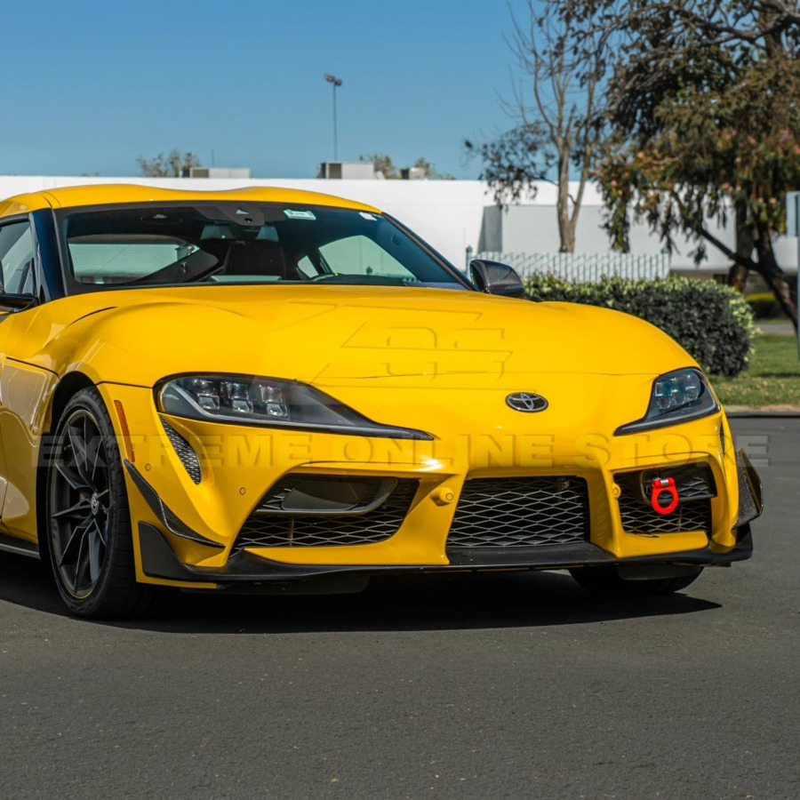 Upgrade your 2020–2026 Toyota Supra with the 2020-Up Toyota Supra A91 Canard Splitter. Manufactured from high-quality ABS plastic, delivering exceptional durability while maintaining a lightweight, factory-fit design. Features pre-drilled mounting holes (where applicable) for alignment with factory mounting points, ensuring a direct fit without modifications.