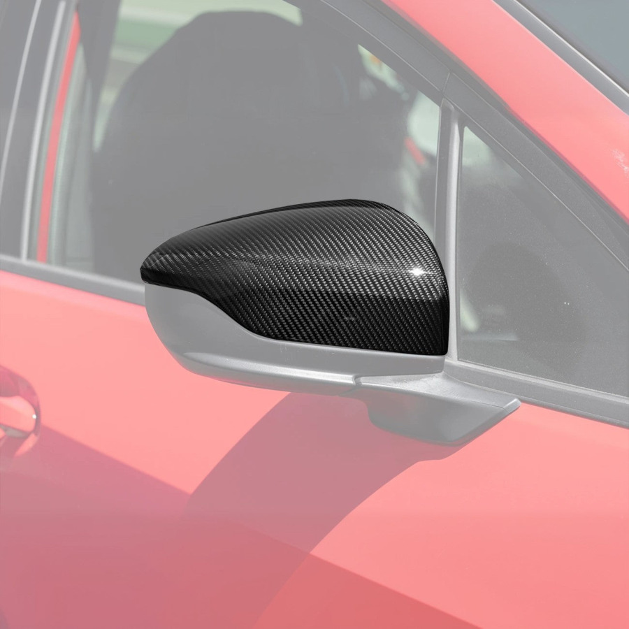 Installation is tool-free — the caps clip directly over your factory mirror housings using integrated retention clips. Simply align and snap into place. No adhesive, no drilling. Typical install time is under 10 minutes.