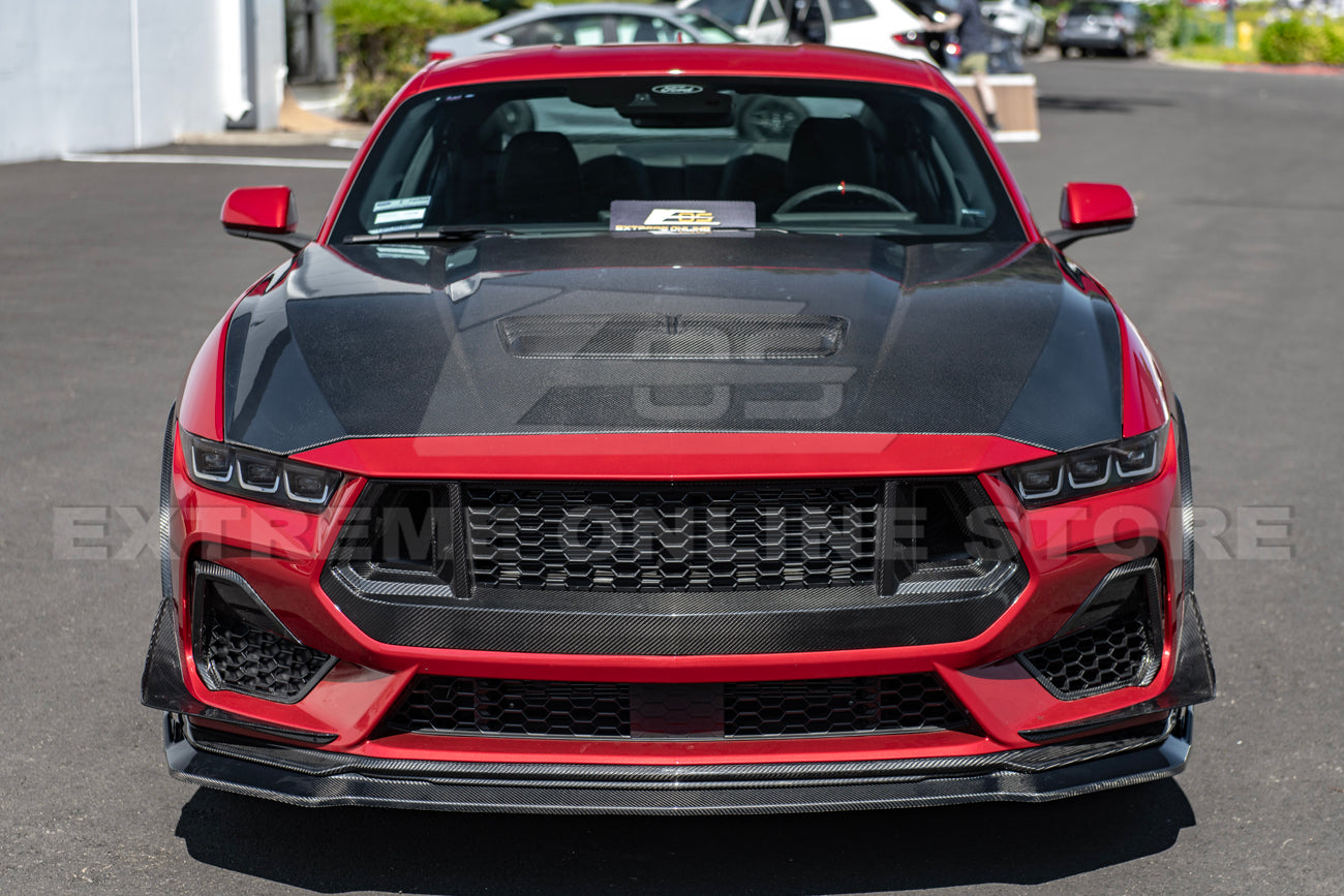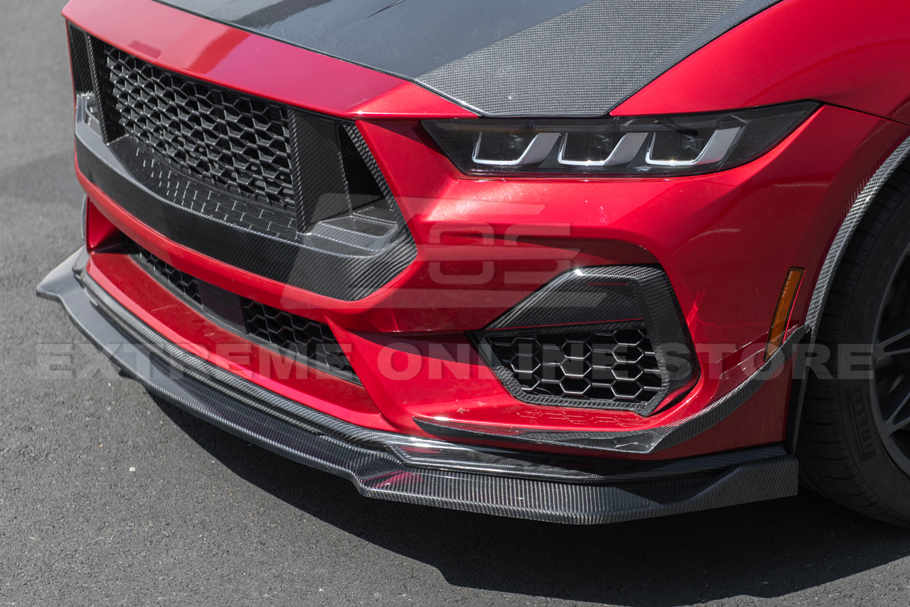 Upgrade your Ford Mustang with the 2024+ Ford Mustang DRY CARBON FIBER Front Splitter. Crafted from premium carbon fiber with a clear-coated UV-resistant finish, this part delivers a genuine motorsport aesthetic with exceptional strength-to-weight ratio. Features pre-drilled mounting holes (where applicable) for alignment with factory mounting points, ensuring a direct fit without modifications.