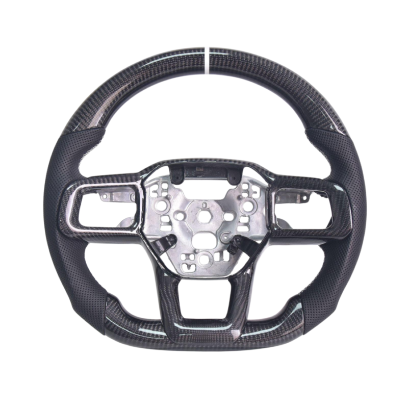 Transform the interior of your 2024+ Ford Mustang with this Carbon Fiber steering wheel. Featuring black, white, leather construction with precision stitching, this wheel delivers a motorsport-inspired grip that completely changes how your car feels from the driver's seat. Built to OEM specifications for a direct bolt-on replacement with no modifications required.