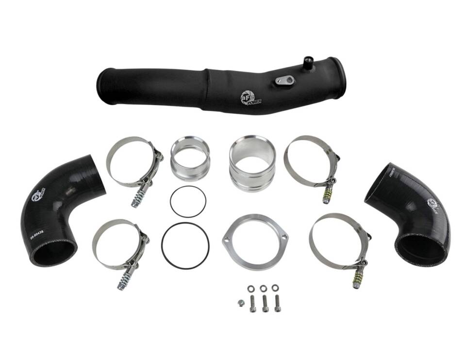Directly replace your Supra’s restrictive plastic intercooler tube with aFe’s BladeRunner free-flowing, heat-resistant aluminum tube.