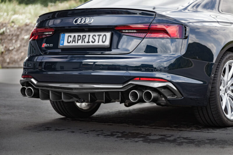 The Capristo Carbon Fiber Rear Diffusor for the new RS5 will give you that car that extra edge you’re looking for to stand out from the crowd. Available in Gloss or Matte finish. Capristo carbon is all designed and manufactured 100% in house at our headquarters in Germany in TypeK (Audi OEM) matching Carbon Weave to match any OEM Carbon your RS5 came equipped with.