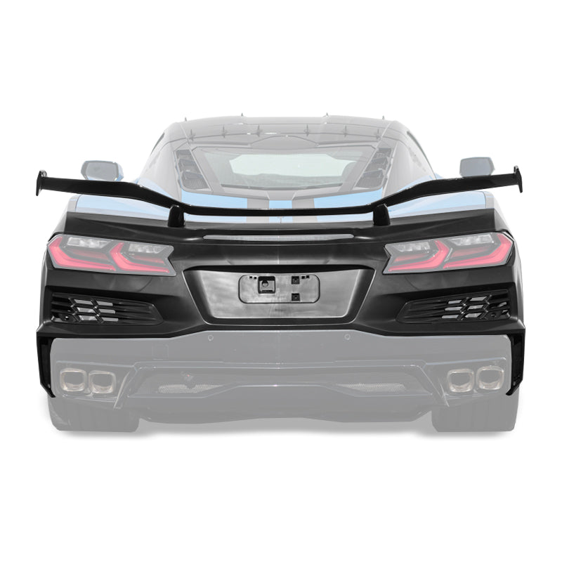 Upgrade your 2020–Present Chevrolet Corvette C8 with the Corvette C8 Stingray Rear Bumper & Spoiler Kit [Z06 Conversion Package]. Constructed from polyurethane with a primed black finish, this rear spoiler delivers an aggressive motorsport look with exceptional build quality. Designed for a direct fit using factory mounting points and included hardware for precise, gap-free installation.