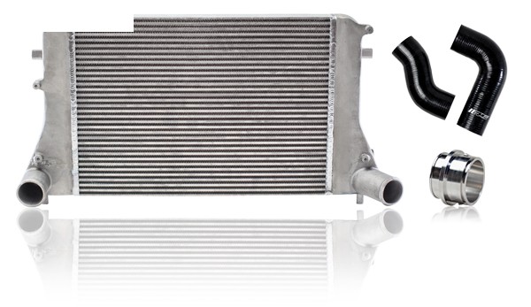 The CTS MK5 2.0T Direct Fit FMIC Kit is designed as a drop in replacement for the OEM front mounted intercooler (FMIC). That means you can install this kit without any trimming or modification of the bumper. The OEM FMIC is adequate for stock boost levels, however once boost levels are increased by way of ECU upgrades/chipping the OEM FMIC struggles to keep the charged air temperatures in check. Higher charged air temperatures can result in boost cut and timing pull, both reducing the amount of power your vehicle produces.