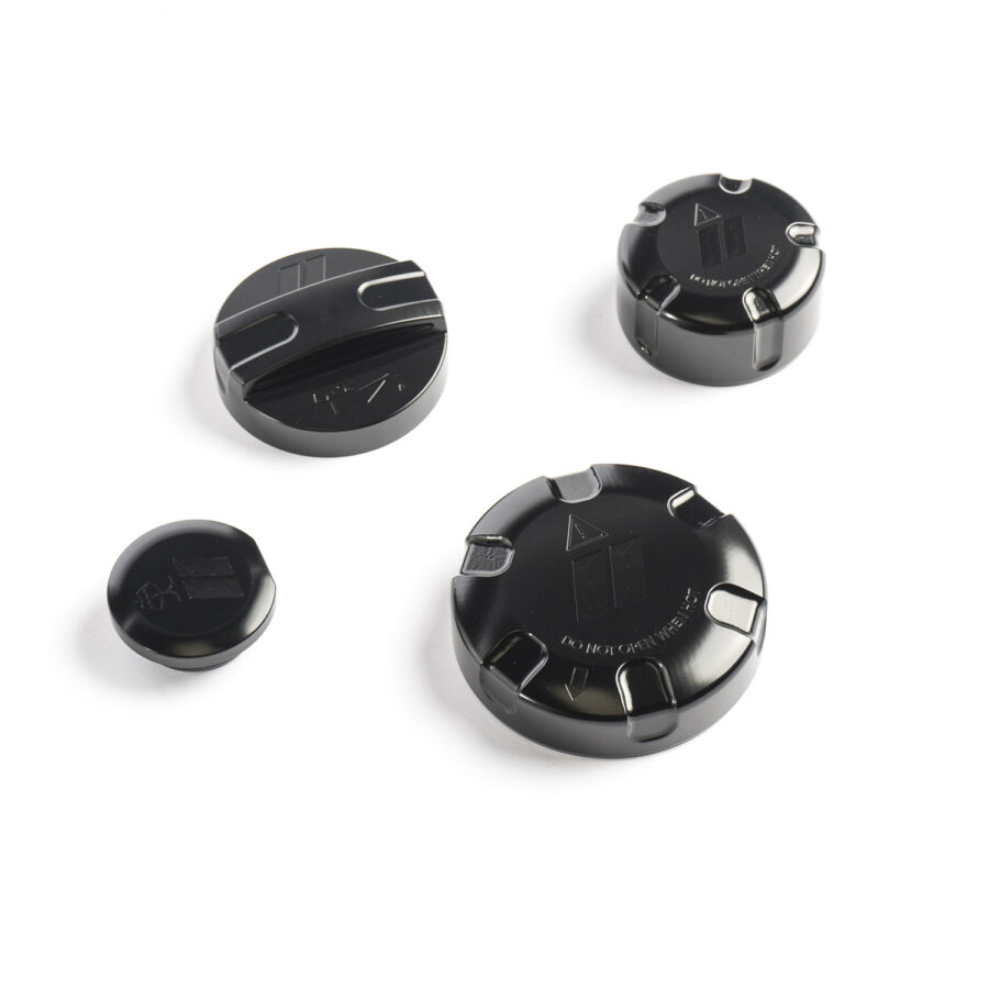 The Supra engine bay is a bit boring with the OEM plastic caps. Our billet accessory caps look fantastic once installed. They are black anodized for a clean and classy look.