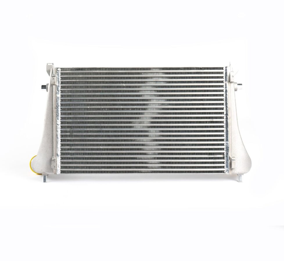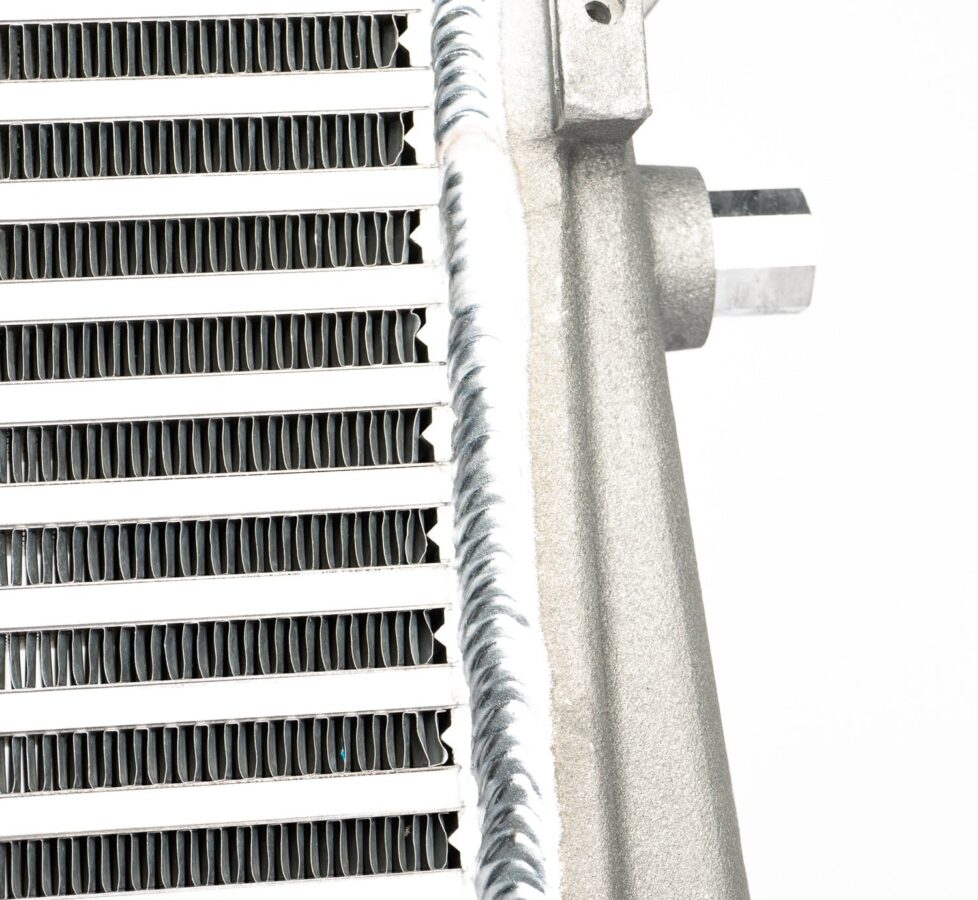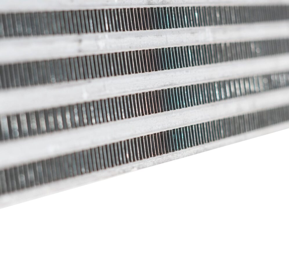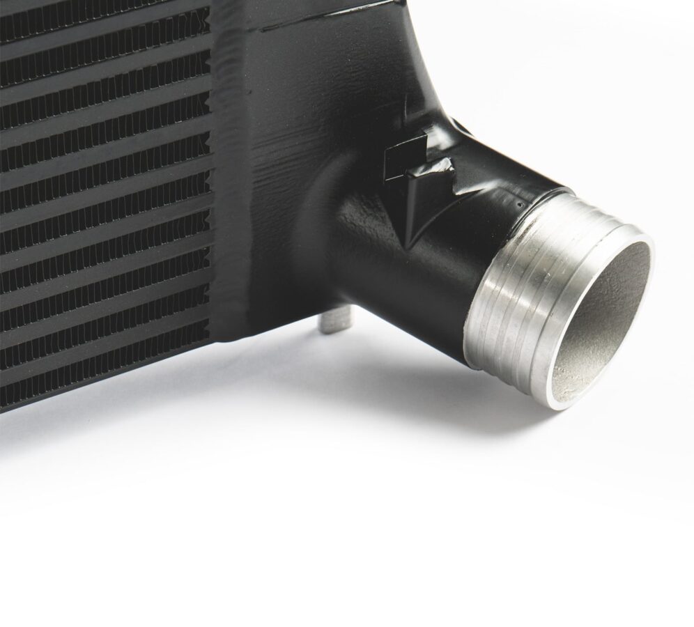 - Airflow directing fins are cast into the end tanks to help with even air distribution inside the intercooler.