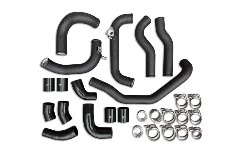 Complete hot-side and cold-side aluminum charge pipe kit for 3.0L Bronco Raptor and Ranger Raptor. Replaces restrictive factory pipes with high-flow aluminum construction. CVF Lifetime Warranty included.