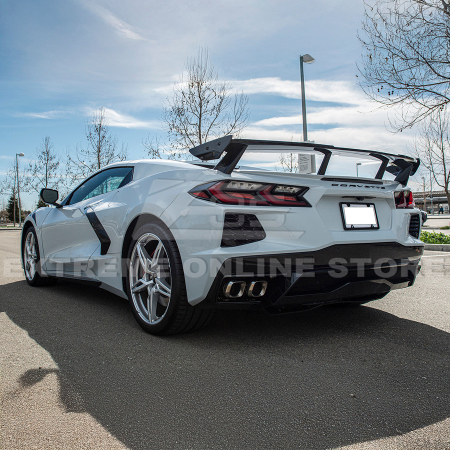 Upgrade your 2020–2024 Chevrolet Corvette C8 with the Chevrolet Corvette C8 Matte Black Rear Trunk Lid High Wing Spoiler. Manufactured from high-quality ABS plastic, delivering exceptional durability while maintaining a lightweight, factory-fit design. Features pre-drilled mounting holes (where applicable) for alignment with factory mounting points, ensuring a direct fit without modifications.