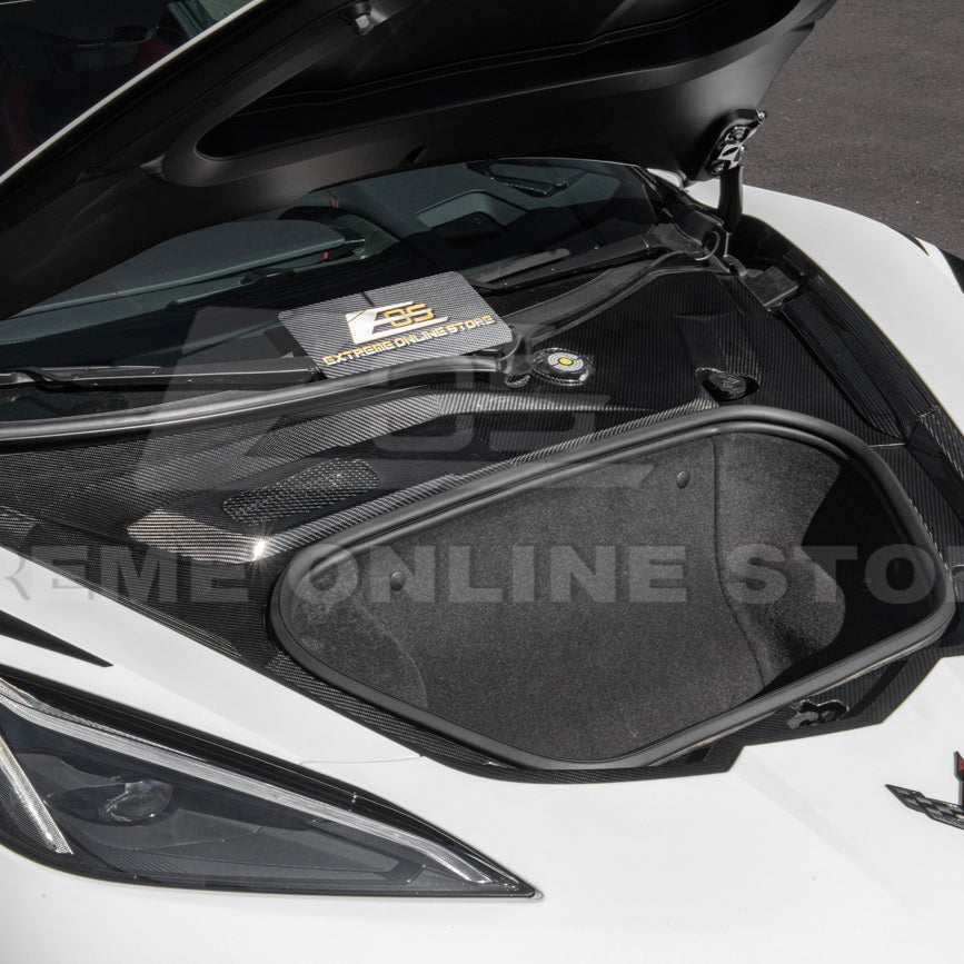 nEnhance your 2020-Present Chevrolet Corvette C8 with the Factory Style Front Trunk Trim Cover Kit. Made from high-quality dry prepreg carbon fiber, this kit offers a premium look with a sleek carbon fiber finish, adding both style and durability.