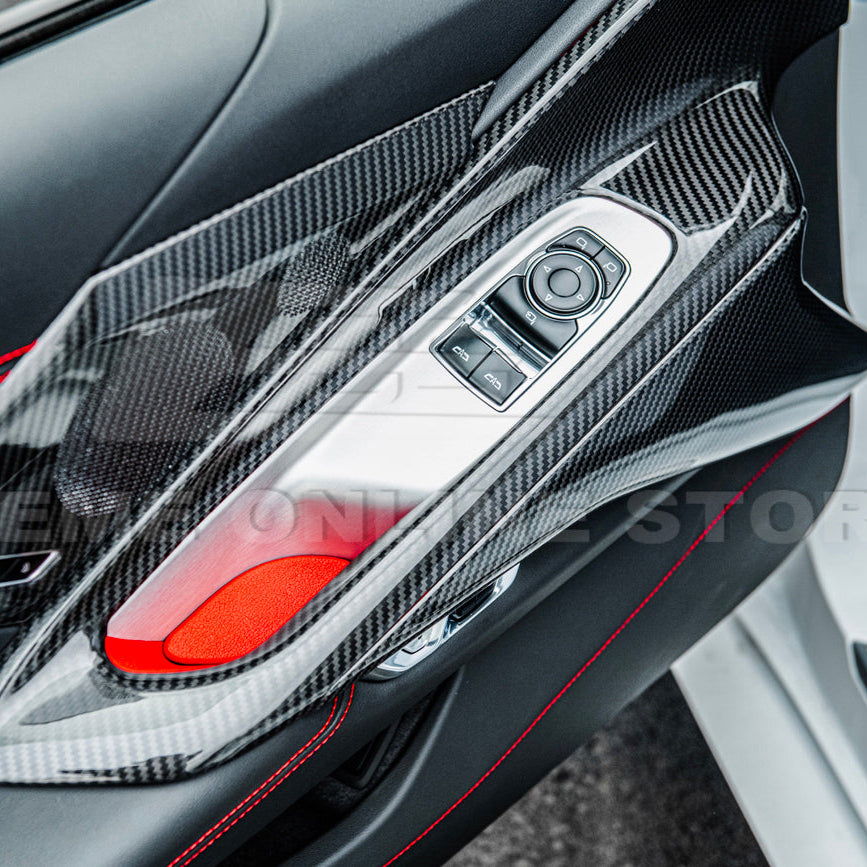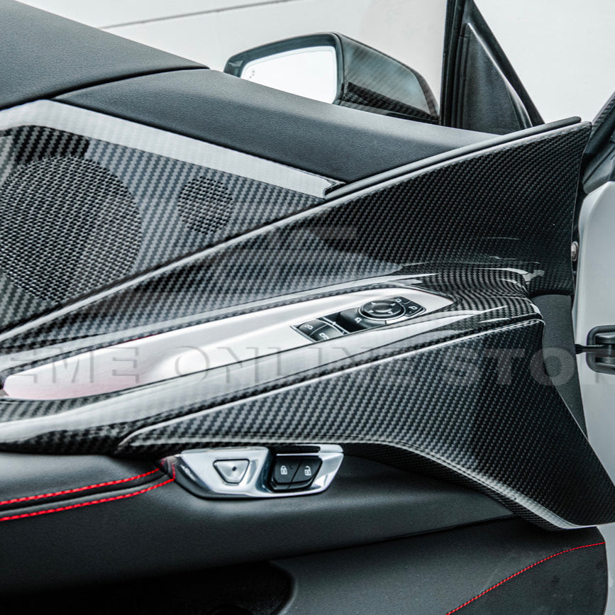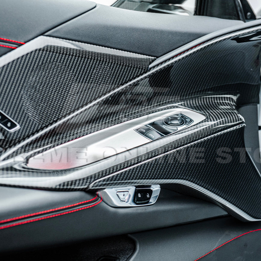 Elevate the interior of your Chevrolet Corvette C8 (2020–Present) with this Factory Style Carbon Fiber Window Switch Trim & Pillar Panel Cover Set. Designed for both Coupe and Convertible models, this upgrade includes two pairs of precision-engineered overlays — the door window outer switch panel covers and the door bottom pillar panel covers. Together, they transform your Corvette’s cabin with the exotic appearance of carbon fiber while maintaining OEM-quality fit and function.