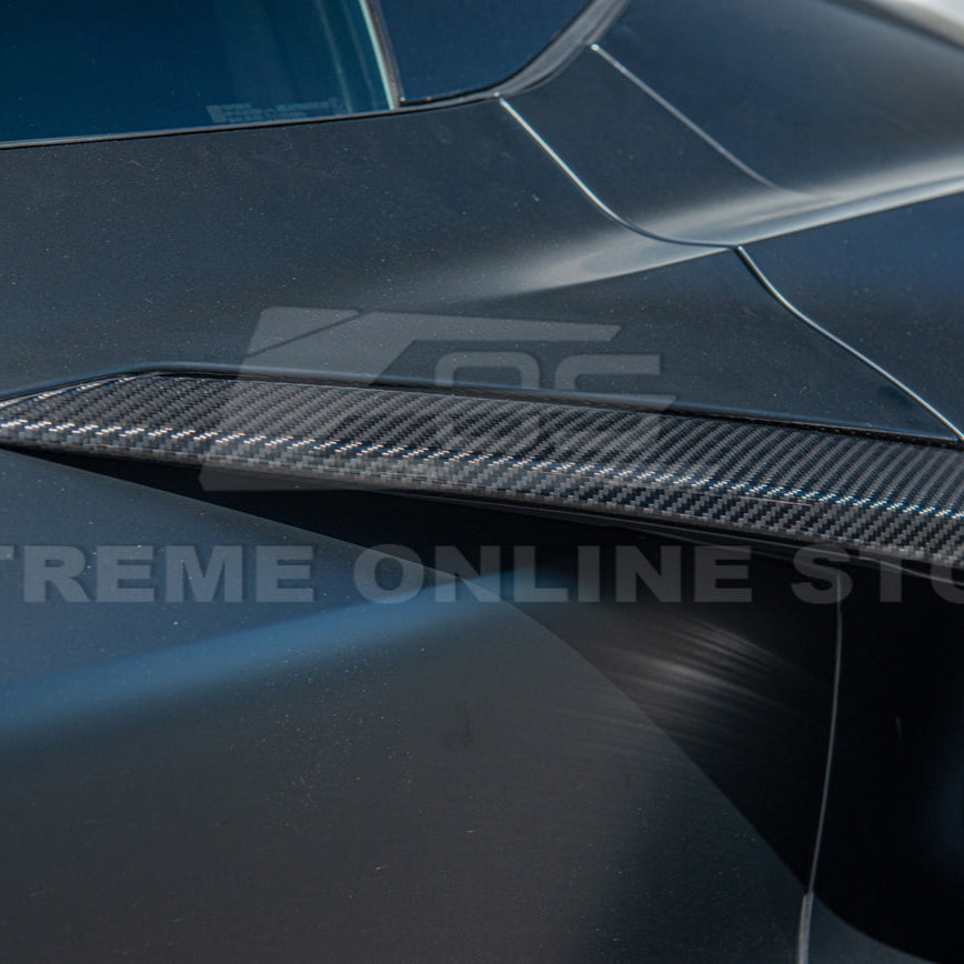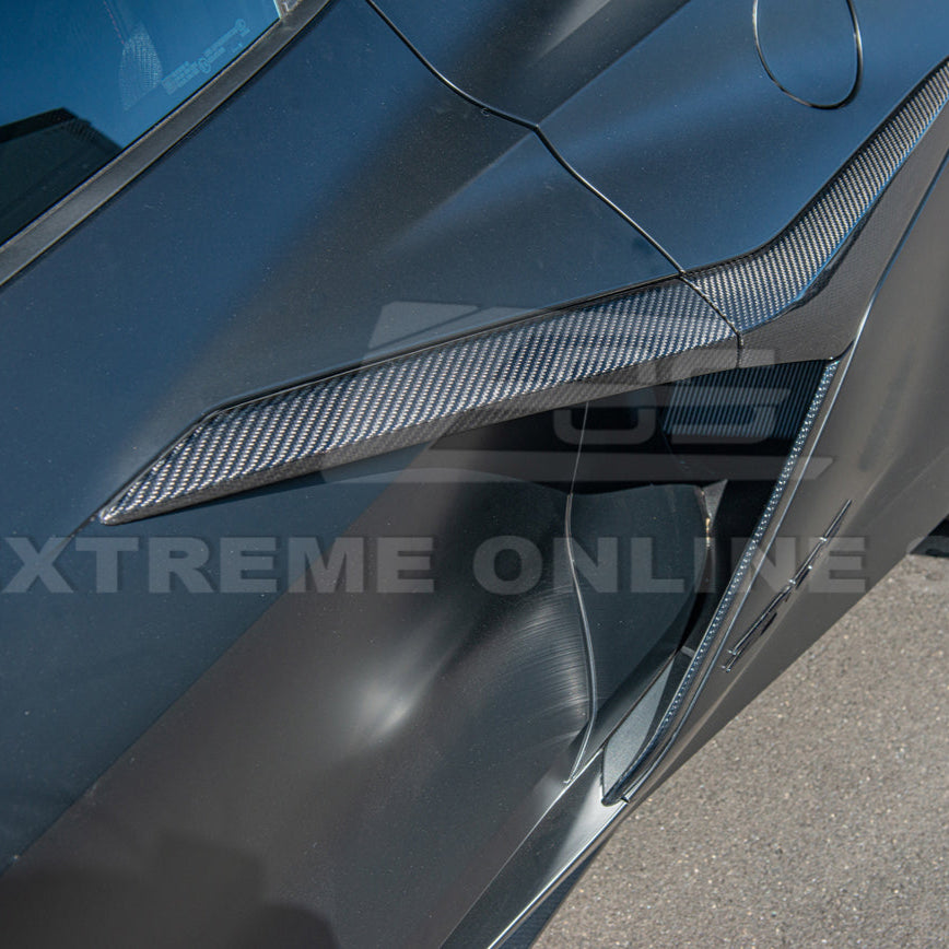 The 2023-Up Chevrolet Corvette C8 Z06 Carbon Fiber Door Handle is a high-end automotive accessory designed to enhance the visual appeal of the 2023-Present Chevrolet Corvette C8 E-Ray and Z06 models. The Door Handle is constructed from high-quality Carbon Fiber. Carbon Fiber is chosen for its lightweight properties and high strength, making it an ideal material for components that require both performance and aesthetics. The Carbon Fiber surface finish adds a premium and sporty appearance to the
