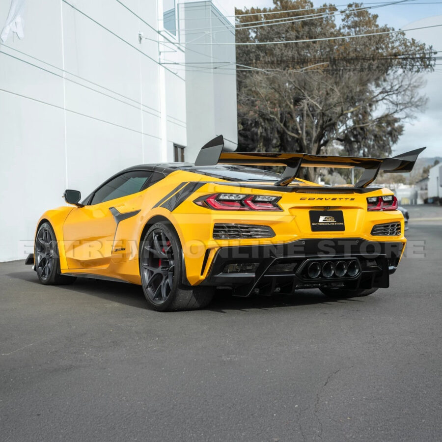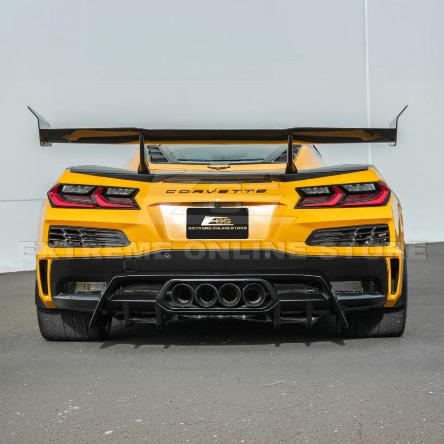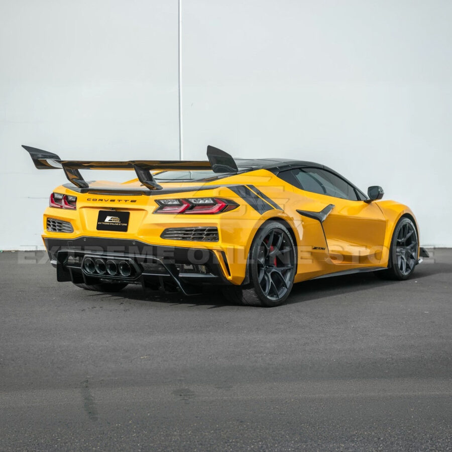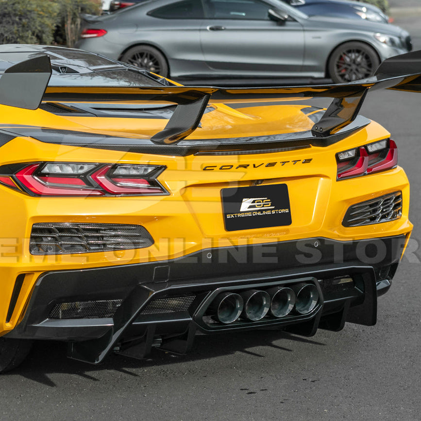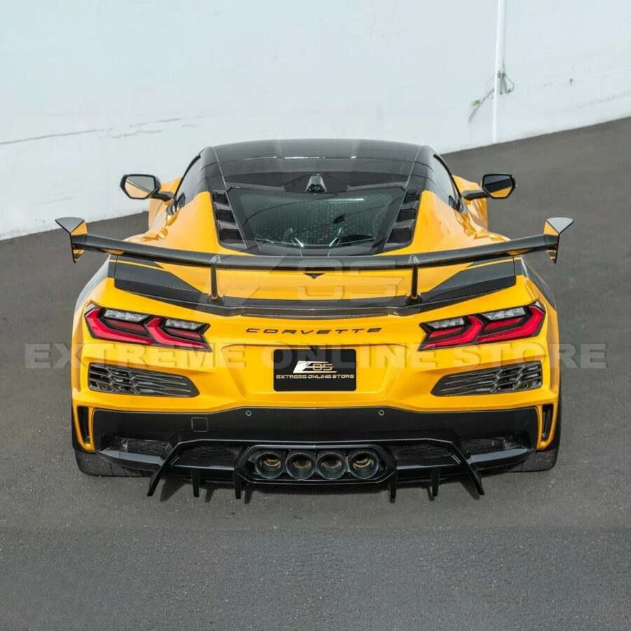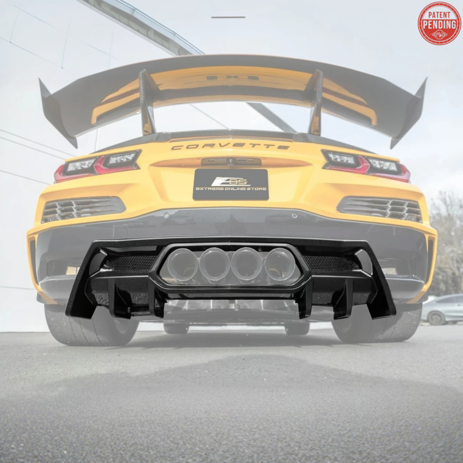 Transform the rear-end styling of your 2023–Present Chevrolet Corvette C8 Z06 with the EOS Performance Package Rear Bumper Finned Diffuser Cover. Specifically engineered for the Corvette Z06, this aggressive add-on diffuser is designed to amplify the aerodynamic presence of the Z06 while maintaining a sleek OEM+ appearance that blends seamlessly with factory lines. This diffuser is not compatible with Corvette C8 Stingray, Z51, or E-Ray models.