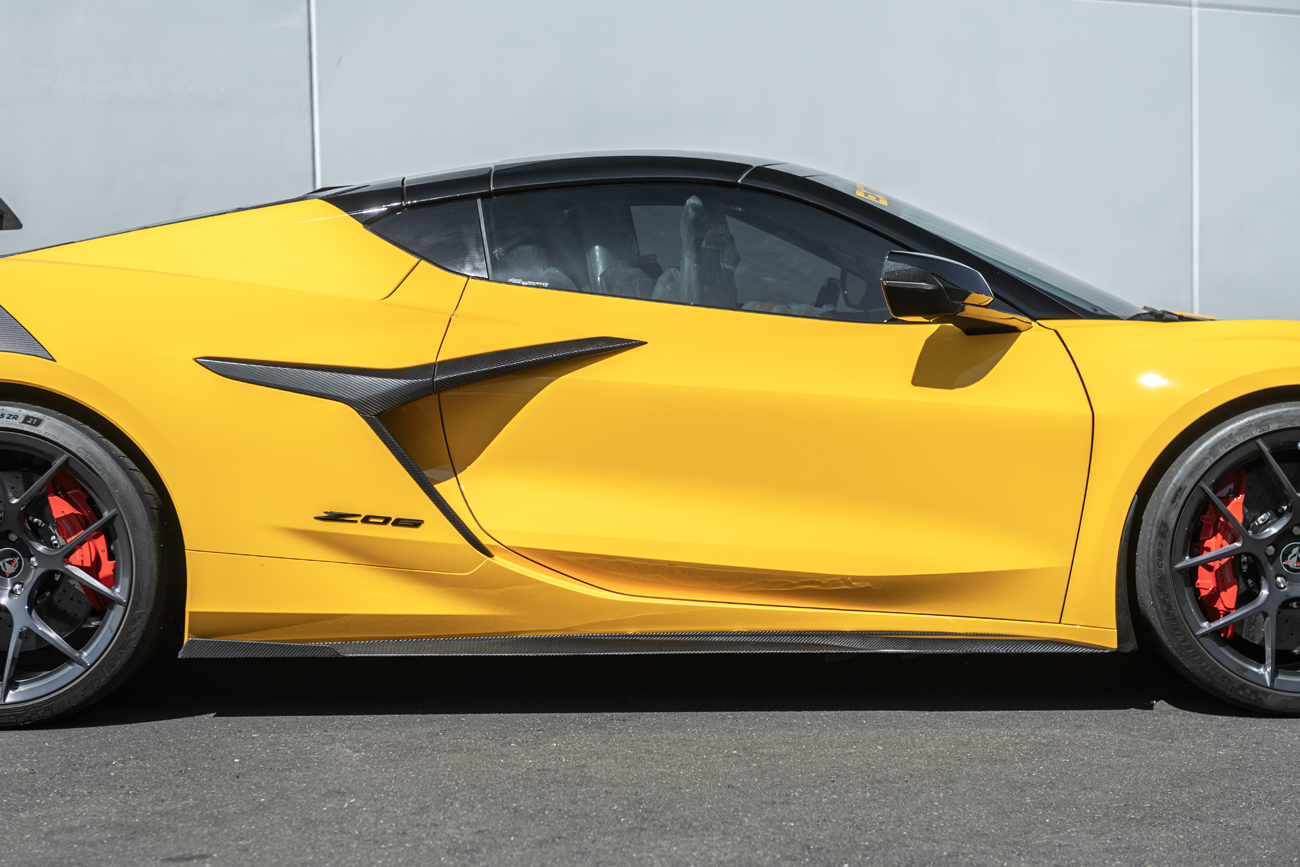 Whether you drive your Corvette on the street, at shows, or on the track, these side skirts provide improved side airflow management, helping reduce drag and increasing stability at high speeds while elevating the Corvette’s exotic appeal.