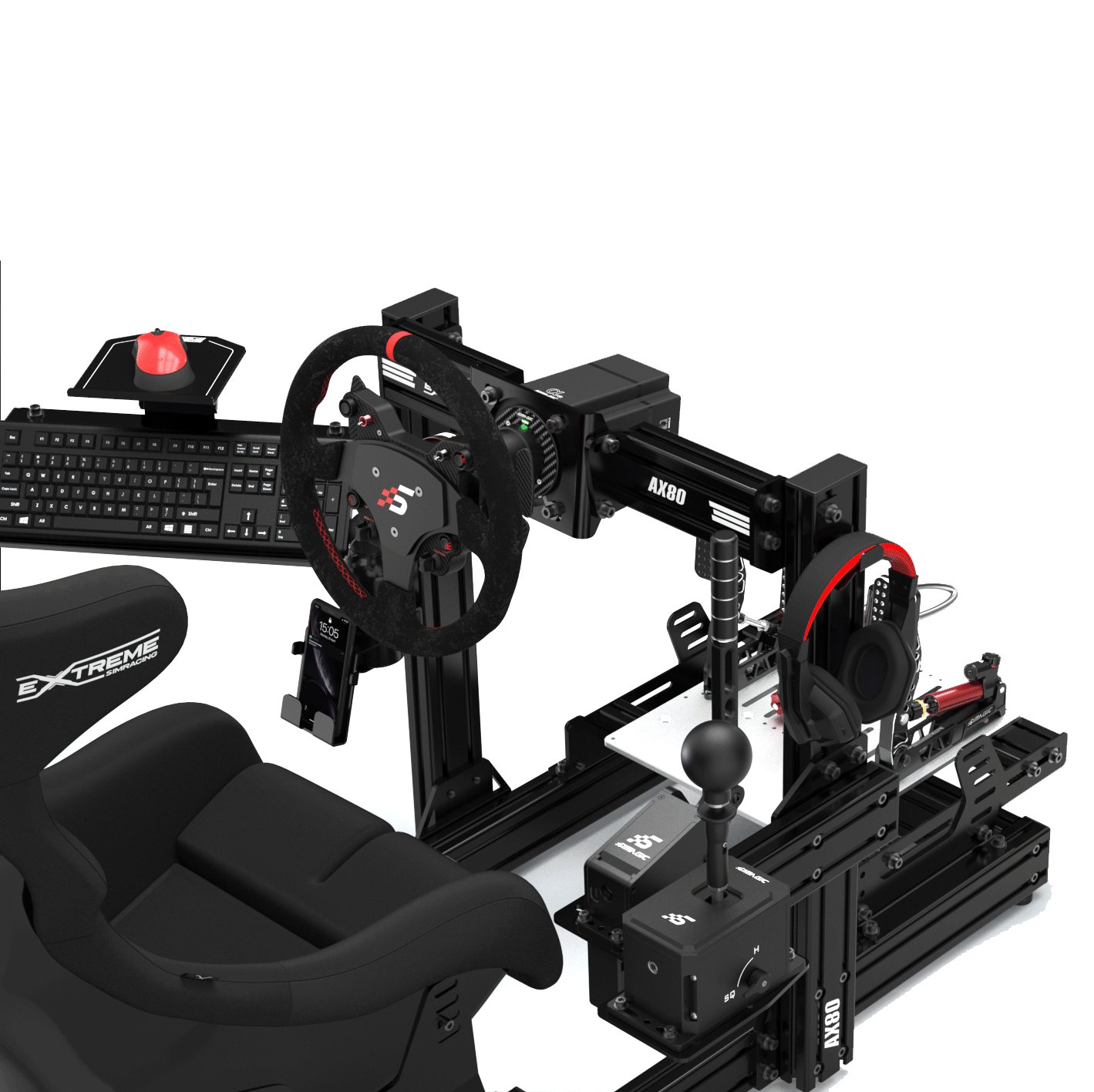 AX80 Modular Racing Simulator: Premium Quality Parts and Accessories for Endless Customization. Upgrade with multi-screen options, reinforced gearshift and handbrake, integrated keyboard tray, and over 11 seat models. Achieve the ultimate organized and high-performance driving setup.