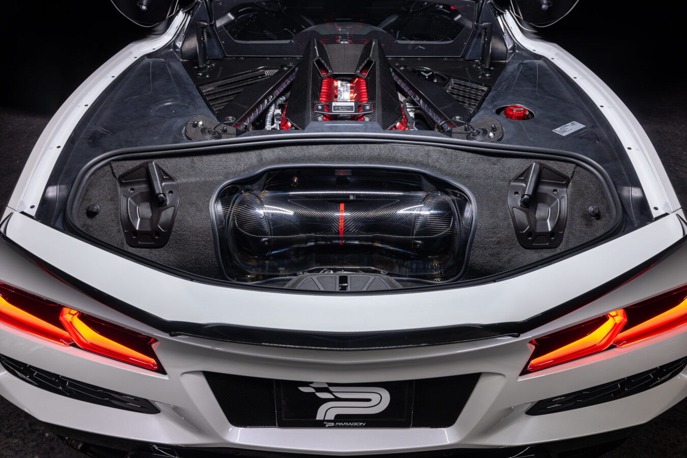The C8 Z06 Eventuri intake represents a significant advancement in intake design, setting a new standard for performance and innovation within this platform. By re-imagining the intake without the confines of the OEM trunk panel, we’ve created a solution that not only maximizes intake size but also showcases the carbon intake with a clear Polycarbonate panel when the trunk is open.