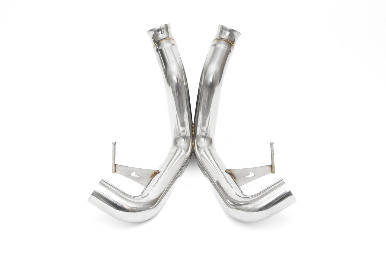 Fabspeed’s Supersport X-Pipe replaces the heavy OEM factory rear cat-back exhaust section with a high-flowing 3.0″ 76mm X-pipe design for improved performance and true hypercar-worthy exhaust sound. The perfect complement to OEM catalytic converters or Fabspeed HJS German Sport Cats. Saves 8 lbs over stock while dramatically improving throttle response.