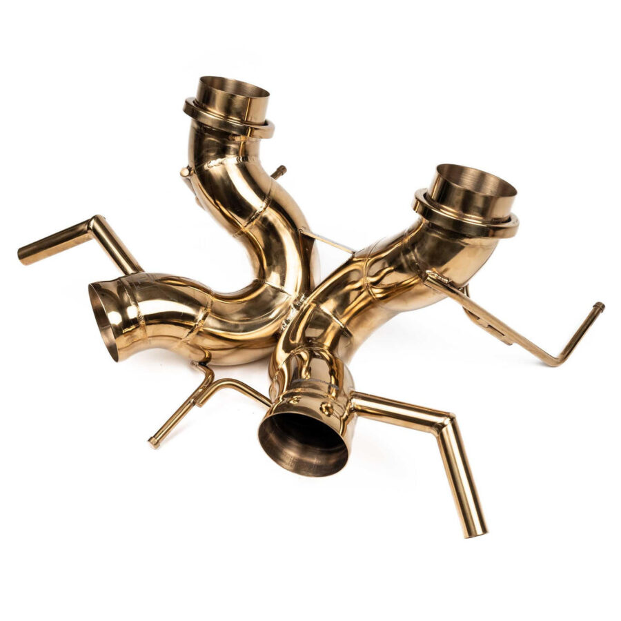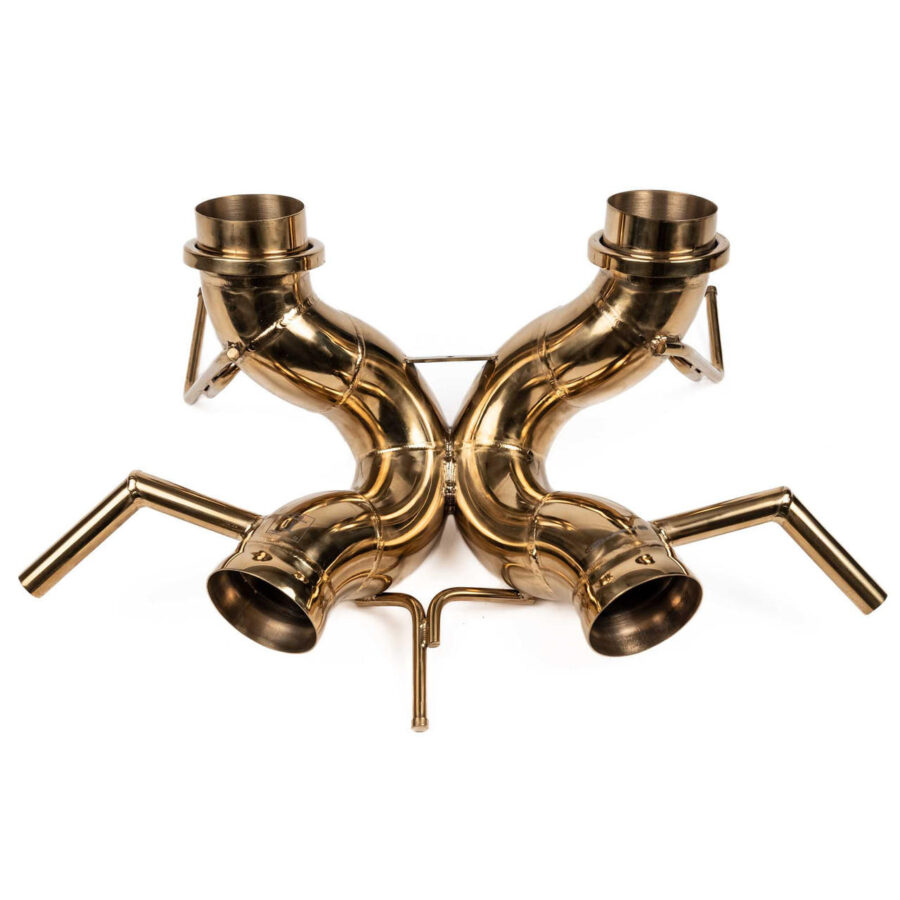 - Fabspeed’s signature cast X-pipe for exotic high-pitched sound