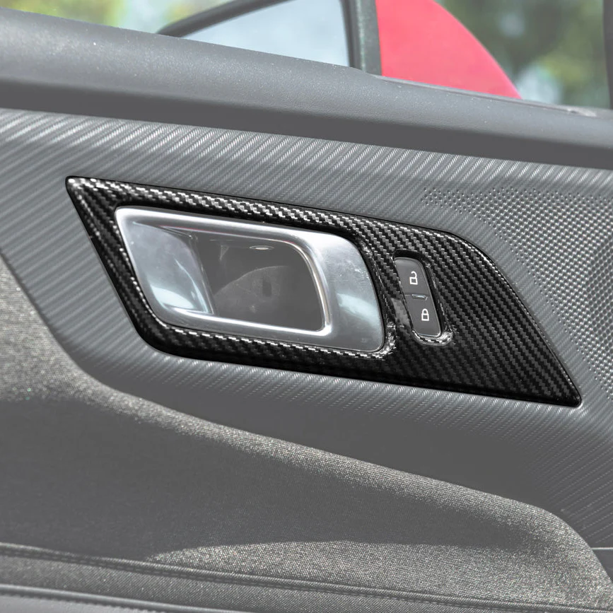 The package includes a full set of interior panel trim covers along with pre-applied automotive-grade double-sided tape for secure attachment. No drilling or permanent modifications are required, ensuring a hassle-free upgrade that retains the integrity of your Mustang’s original design.