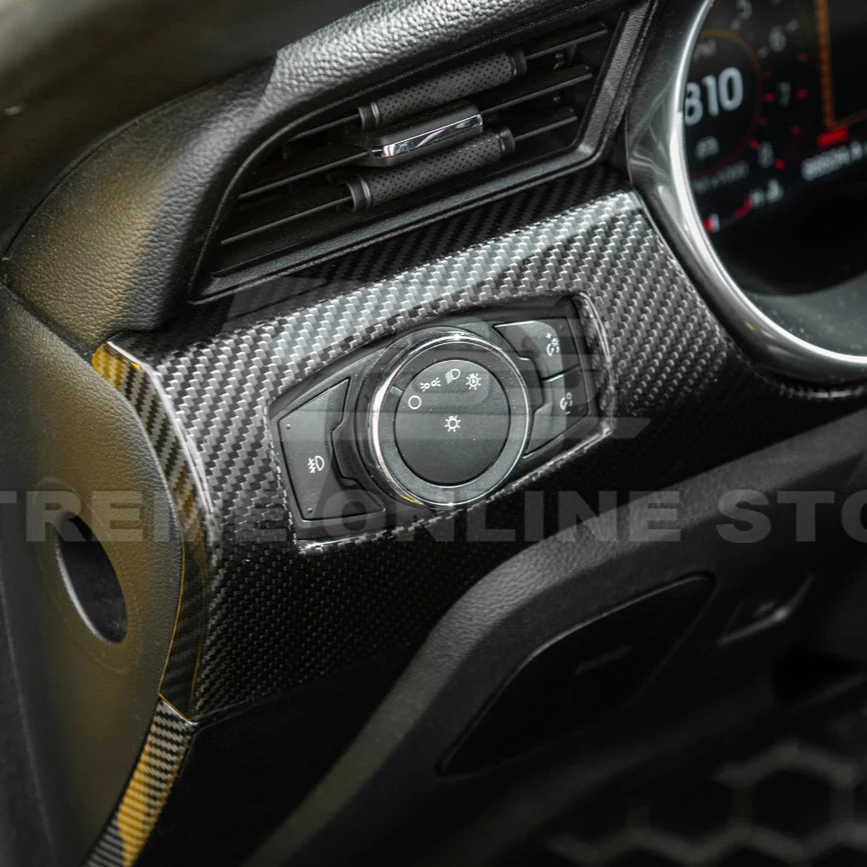 Transform the look and feel of your 2015–2023 Ford Mustang with this Dry Carbon Fiber Interior Tape-On Full Bundle Combo Set. Specifically engineered to fit all Mustang models—including EcoBoost, GT, Shelby GT350, and Shelby GT500—this premium package includes a complete set of factory-style carbon fiber interior trim pieces. Crafted from lightweight dry prepreg carbon fiber, these components deliver an upscale and performance-driven appearance while maintaining the Mustang’s aggressive character.