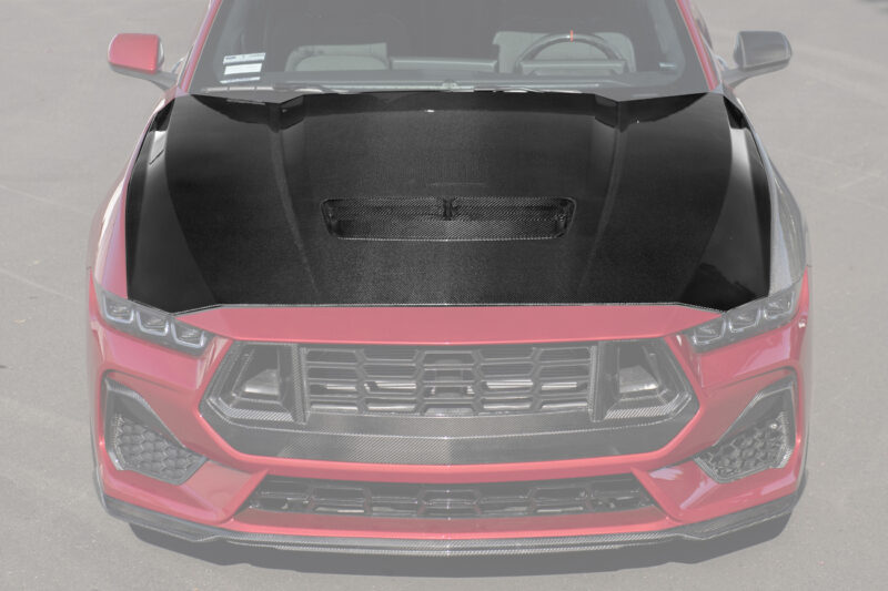 Upgrade your 2024-Present Ford Mustang S650 Dark Horse & GT with the Factory-Style Front Bumper Hood Cover. Made from 3k twill weave real carbon fiber, this cover offers a sleek, lightweight design and a premium carbon fiber finish, enhancing performance and style effortlessly.