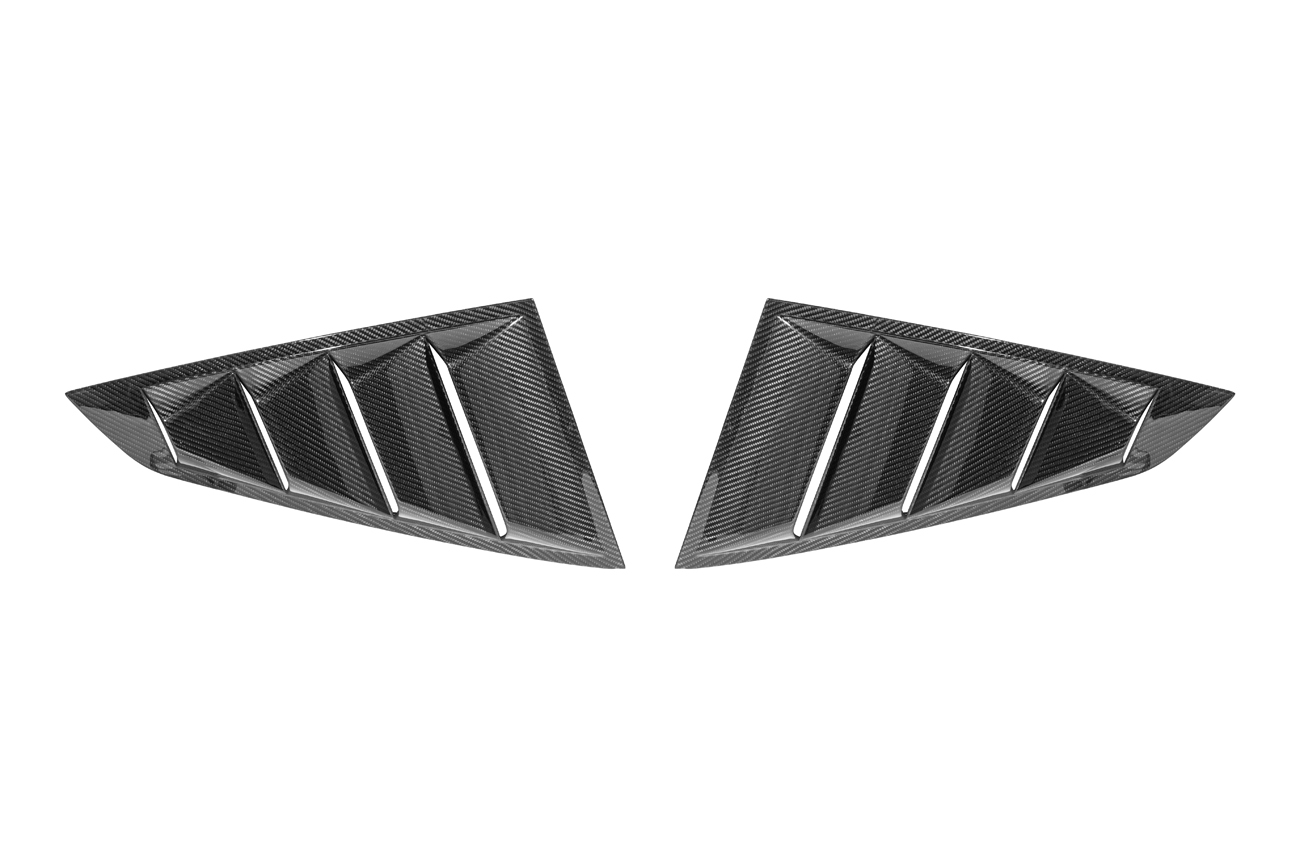 Engineered for a direct tape-on installation, this kit includes precision-molded louvers for both driver and passenger sides, along with pre-cut double-sided adhesive tape for a secure, rattle-free fit. The carbon fiber weave is finished in a high-gloss UV-resistant clear coat to protect against fading, making it perfect for daily driving or weekend shows.