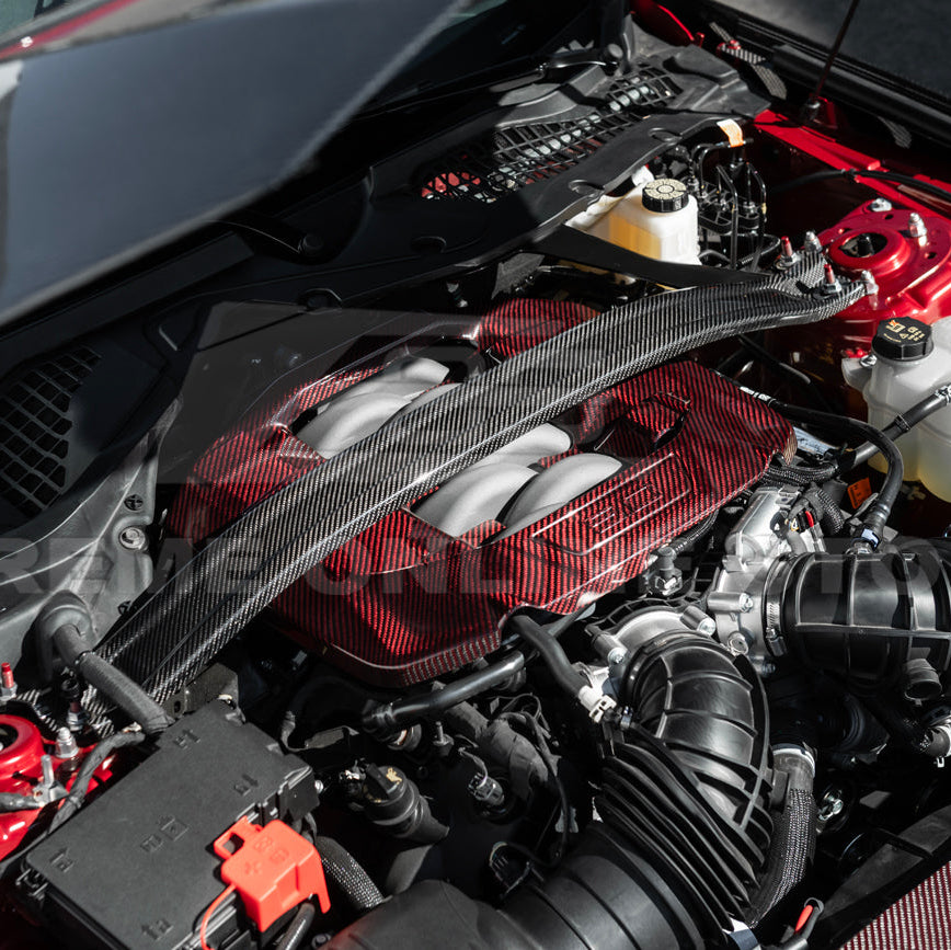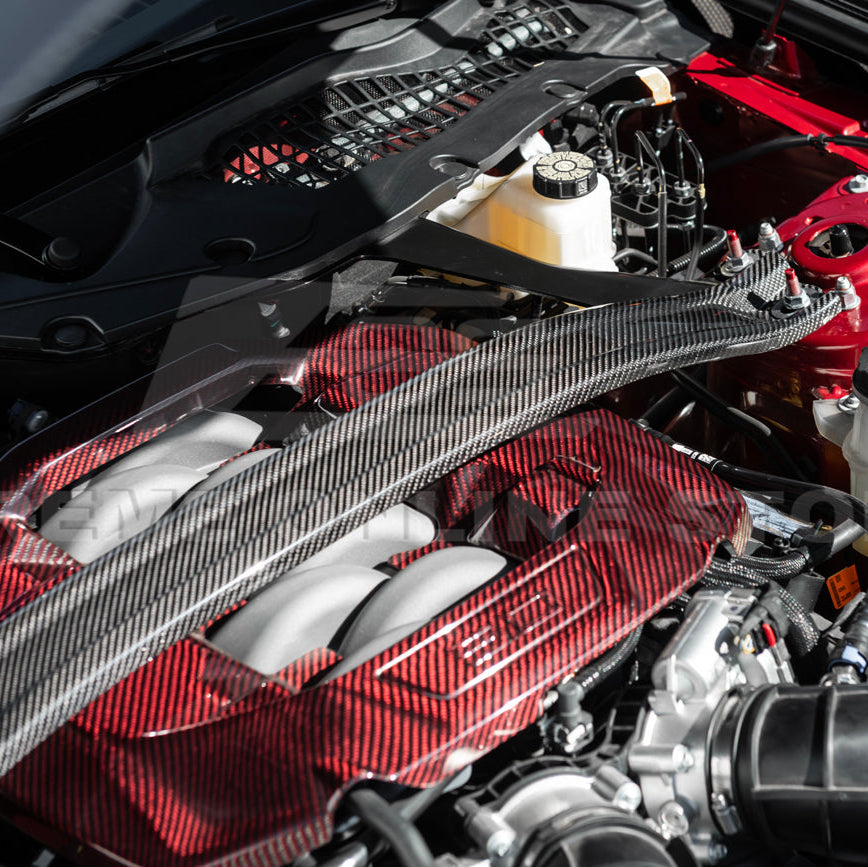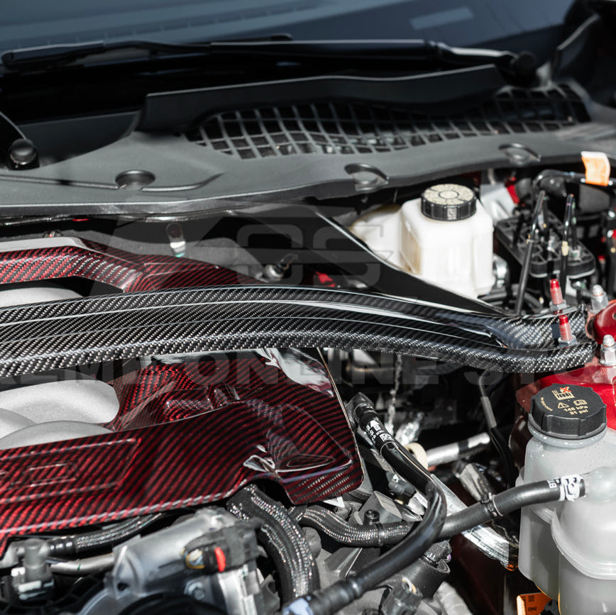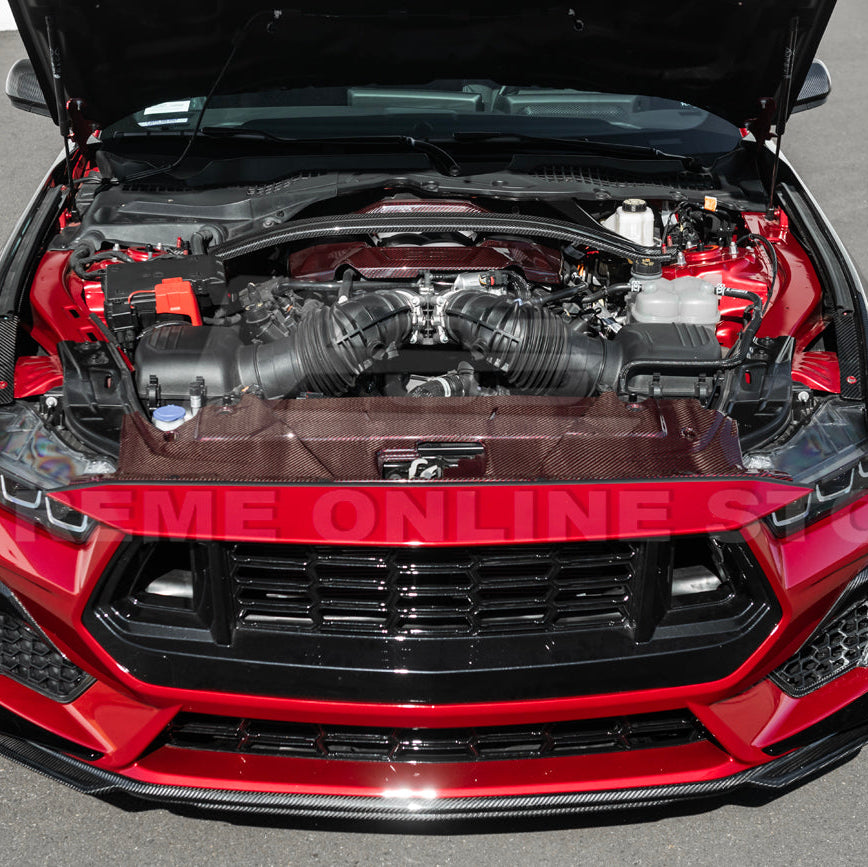 Upgrade both the performance and under-hood aesthetics of your Ford Mustang S650 with this S650 Dark Horse Style Replacement Dry Pre-Preg Carbon Fiber Engine Brace Strut Bar, engineered for 2024–2026 Ford Mustang models. Designed as a direct replacement for the factory strut brace, this component blends motorsport-grade materials with OEM-level fitment to deliver a refined performance upgrade that looks as good as it performs.