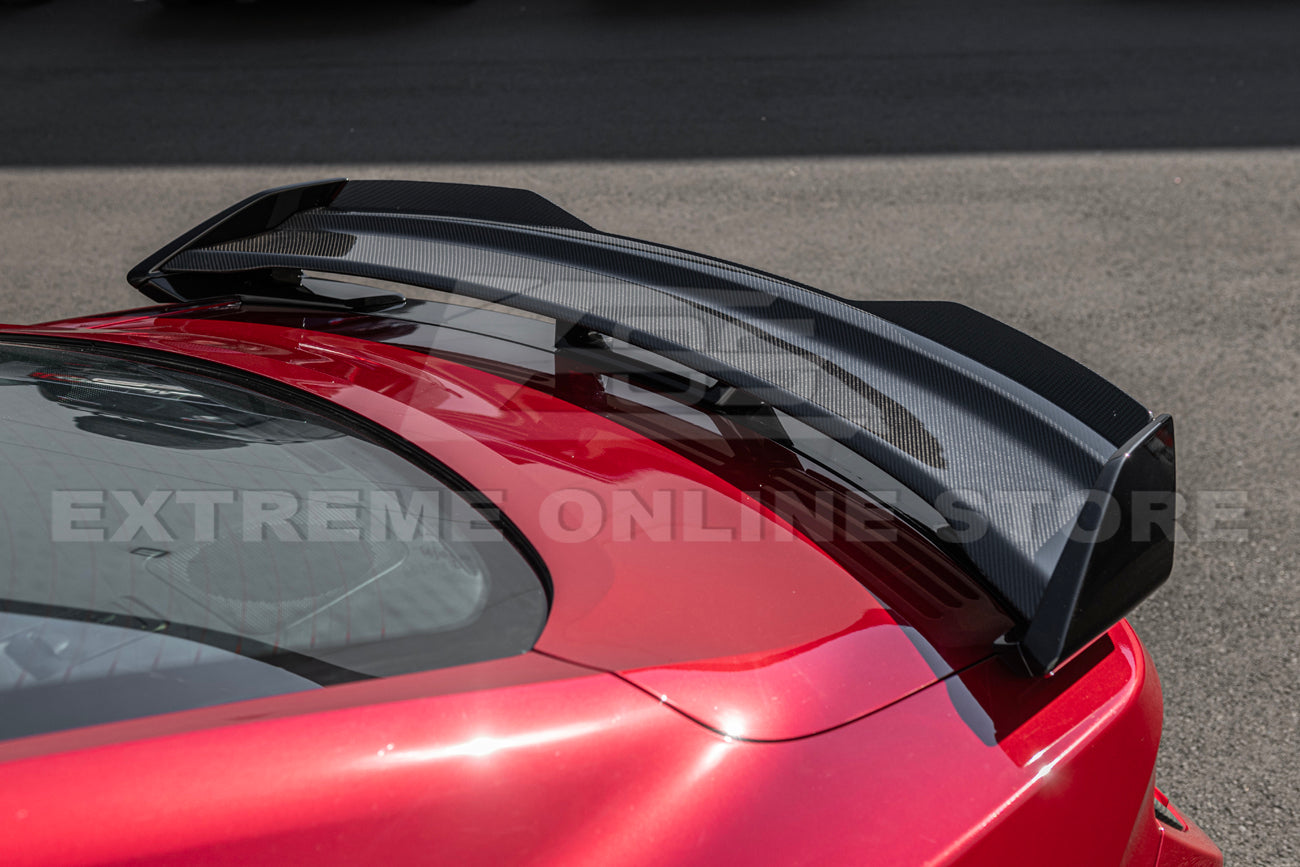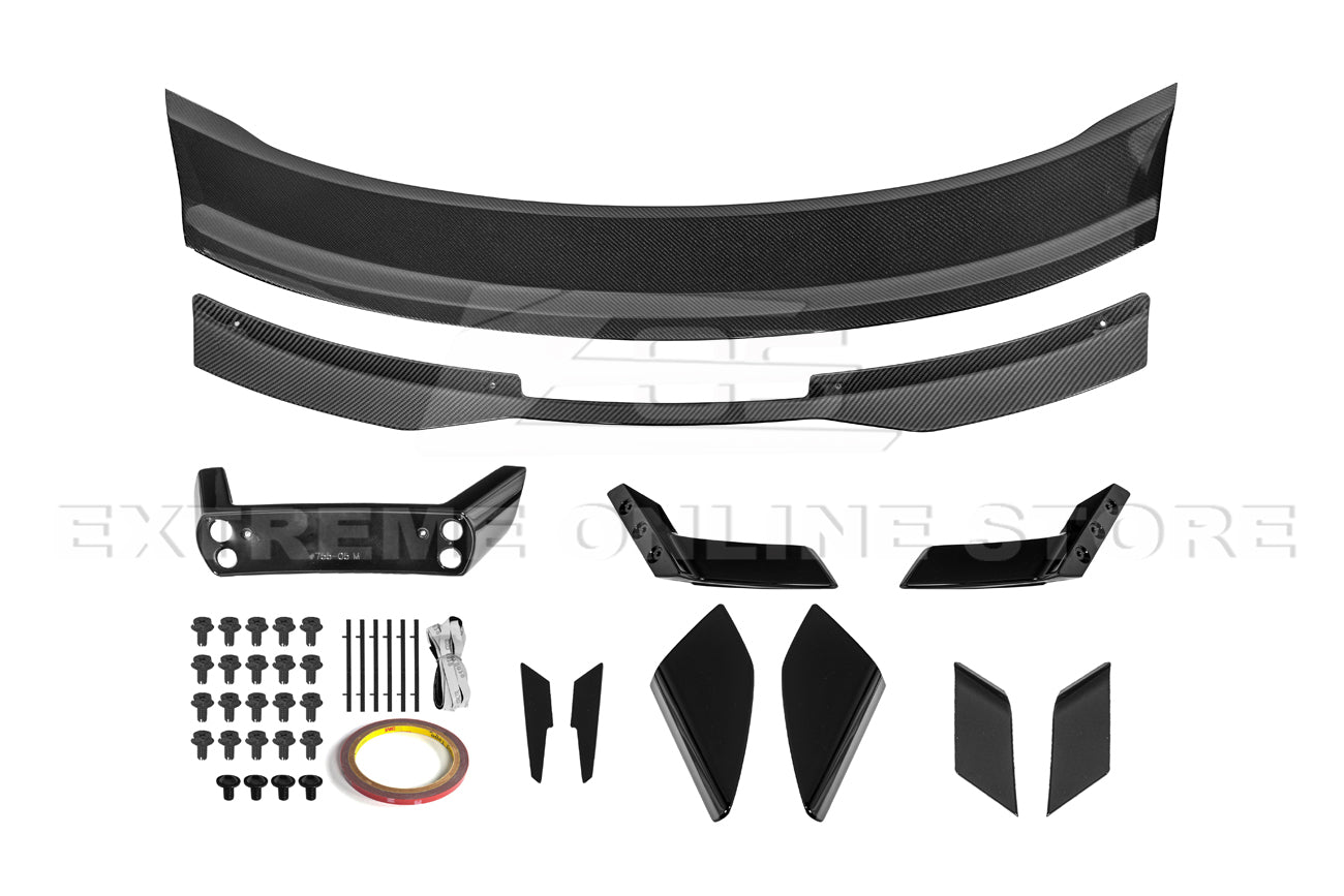 Get the complete Dark Horse rear styling package for your 2024-2026 Ford Mustang S650 with this Dark Horse Rear Wickerbill Spoiler Package. This combo set includes the rear trunk spoiler with matching wickerbill extension, delivering the aggressive Dark Horse appearance in a single, comprehensive kit. Direct bolt-on installation with included hardware.