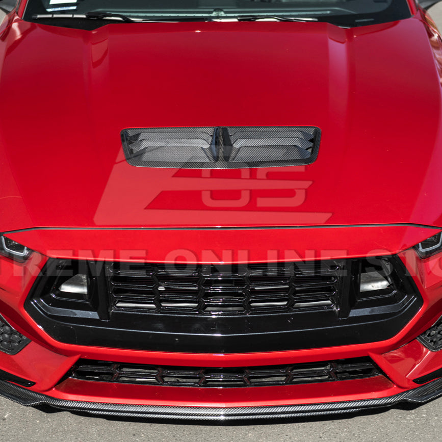 Transform the front profile of your 2024–Present Ford Mustang S650 with the 2024-2026 Ford Mustang S650 Dry Carbon Fiber Front Hood Vent Insert. This full replacement hood features aggressive styling and functional design that dramatically elevates your Mustang’s appearance and thermal management capabilities.