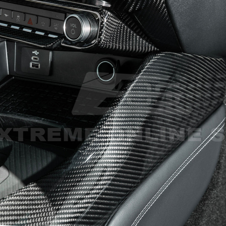 Elevate the interior of your 2024–Present Ford Mustang S650 with the 2024-2026 Ford Mustang S650 Dry Carbon Fiber Interior Center Console Cover. This precision-fit trim piece replaces or covers the factory interior panel with a premium dry pre-preg carbon fiber finish that adds a motorsport-inspired aesthetic to your cabin.