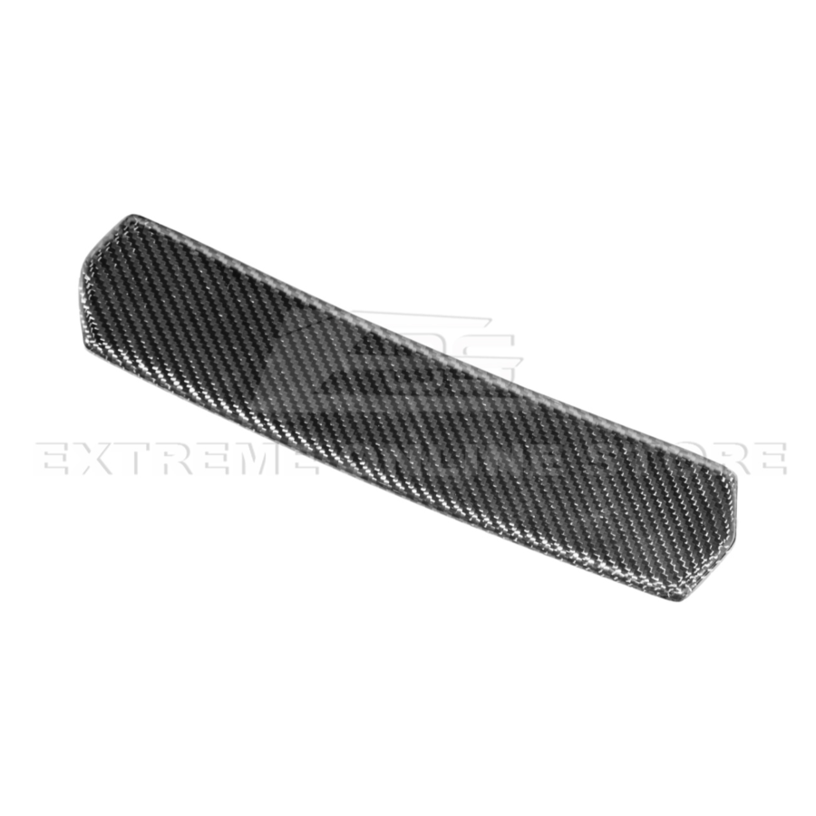 Finish off the rear of your 2024-2026 Ford Mustang S650 with this Dry Carbon Fiber Rear Spoiler Applique Cover. This trim piece covers the bumper hole area beneath the rear spoiler, providing a clean, finished appearance with genuine dry carbon fiber. Simple adhesive installation for a factory-integrated look.