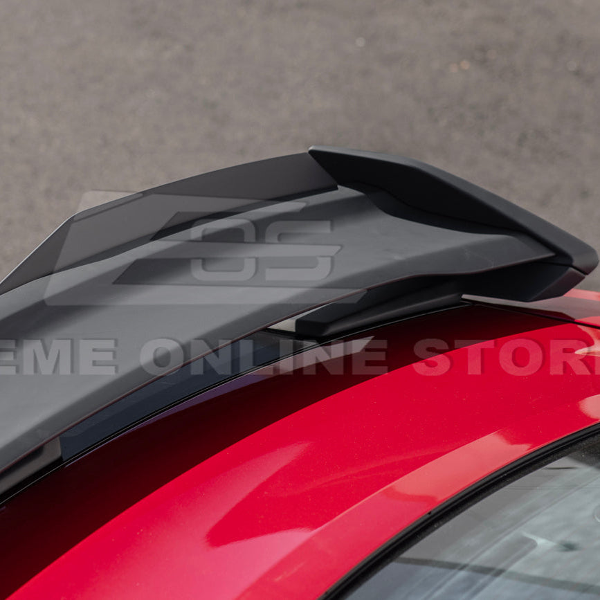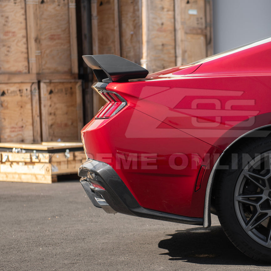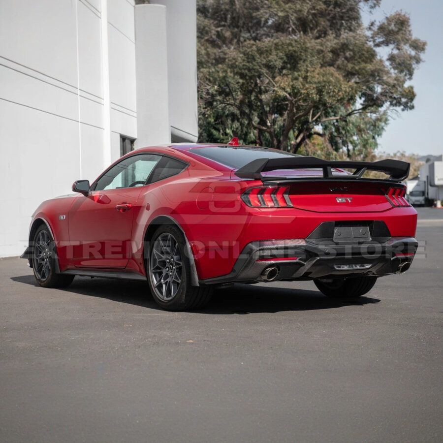 The Ford Mustang Darkhorse Rear Wickerbill Wing Spoiler is designed for all 2024-Up Mustang models equipped with dual exhaust tips, including S650 Dark Horse styles. Made from durable ABS plastic, it comes in a glossy black or matte black finish, providing both style and performance enhancement. The aggressive design adds a sporty flair, improving aerodynamics and enhancing rear-end stability at high speeds. This package is a perfect upgrade for Mustang enthusiasts looking to boost their vehicle’s appearance while maintaining the iconic muscle car look. It fits seamlessly on dual-exhaust models, ensuring easy installation and a sleek finish.