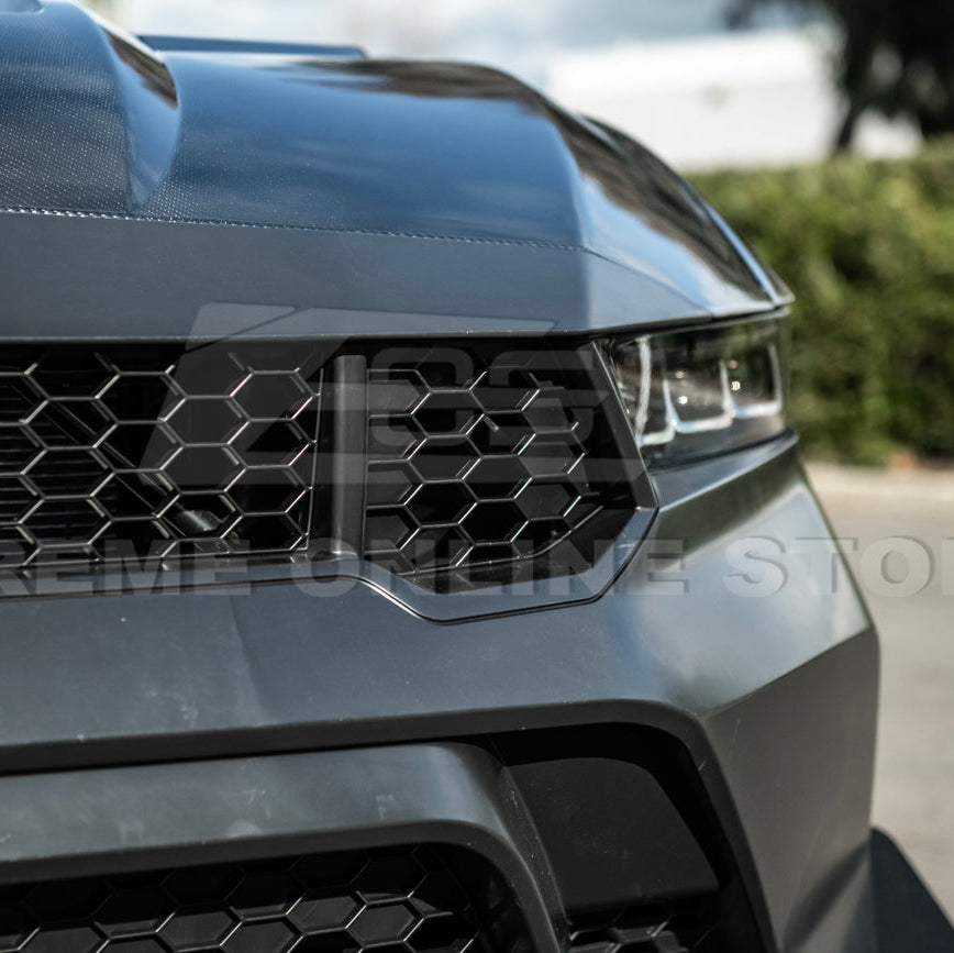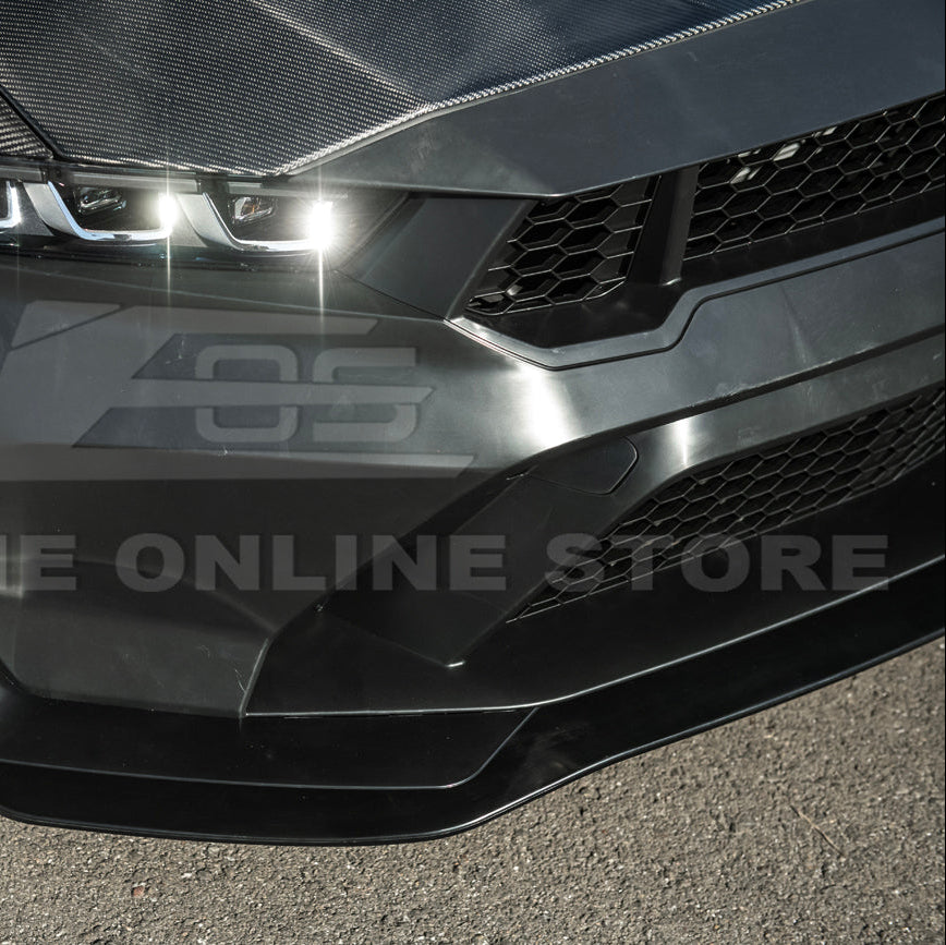 Transform the entire front end of your 2024–Present Ford Mustang S650 with the 2024-2026 Ford Mustang S650 GTD Style Front Bumper Conversion Kit – Primed. This conversion kit replaces or enhances the factory front bumper with an aggressive, motorsport-inspired design that dramatically changes your Mustang’s visual identity.