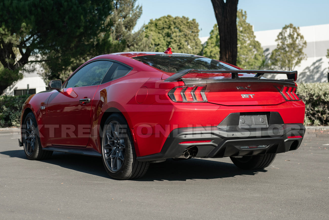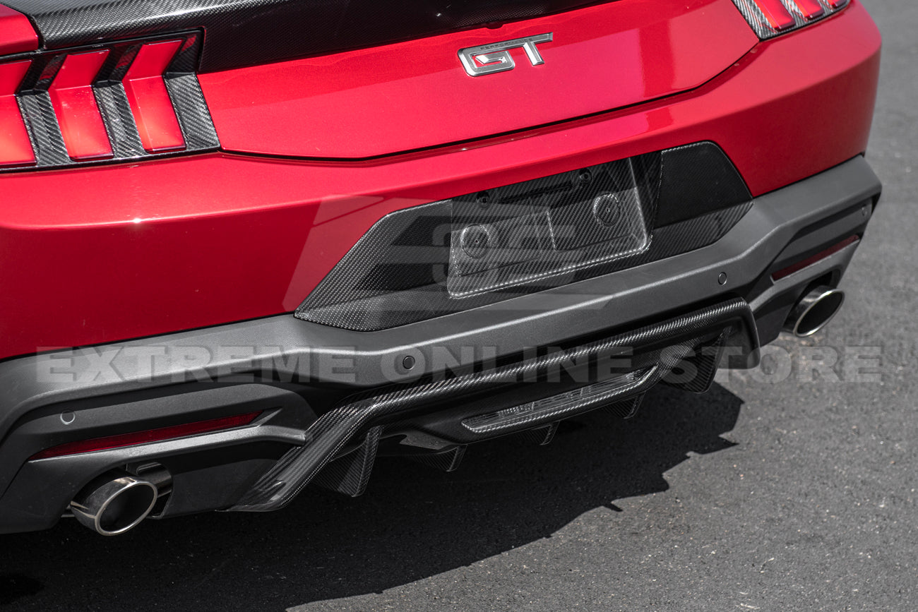 Compatible with 2024–Present Ford Mustang GT, GT Premium, EcoBoost, and EcoBoost Premium models (does not fit Dark Horse), this diffuser is the ultimate choice for Mustang owners seeking a refined balance between race-inspired style and OEM-quality craftsmanship.