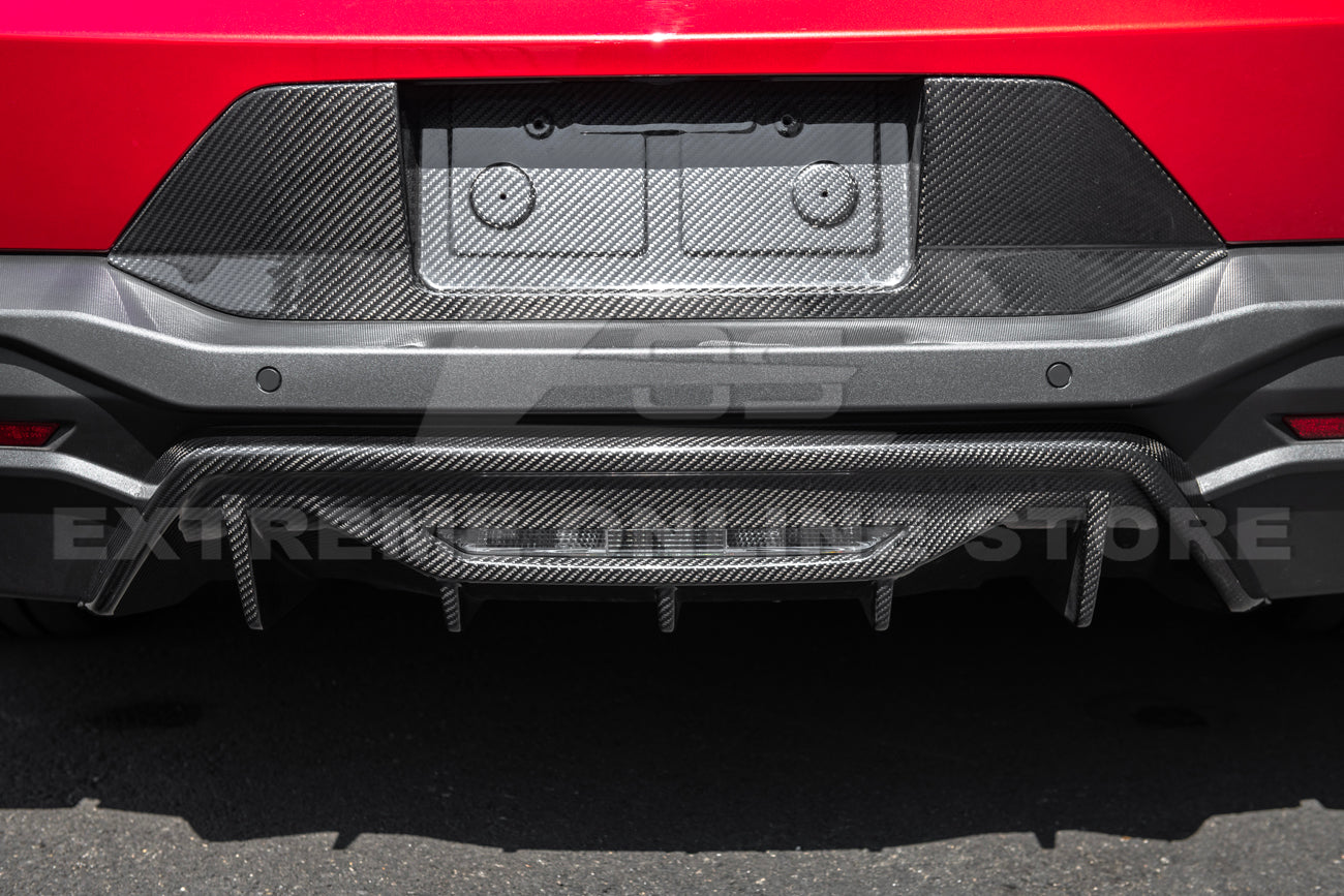 Enhance both the appearance and aerodynamics of your 2024–Present Ford Mustang S650 EcoBoost or GT with this Performance Track Style Dry Carbon Fiber Add-On Rear Lower Bumper Finned Diffuser. Designed with precision engineering and inspired by high-performance track styling, this carbon fiber diffuser dramatically elevates your Mustang’s rear-end aesthetics while improving airflow and stability at higher speeds.
