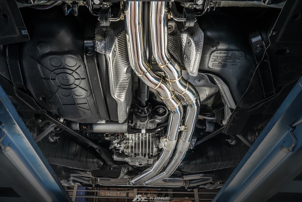 The Fi EXHAUST system is designed with a valvetronic technology to control airflow, sound volume and enhance the overall performance and torque. On average horsepower is expected to increase from 5-10% after installing a full catless system, which includes a valvetronic catback and ultra-high flow downpipe.