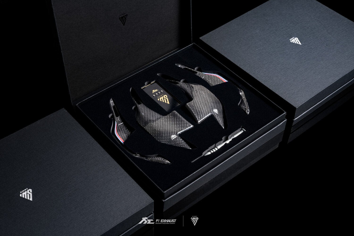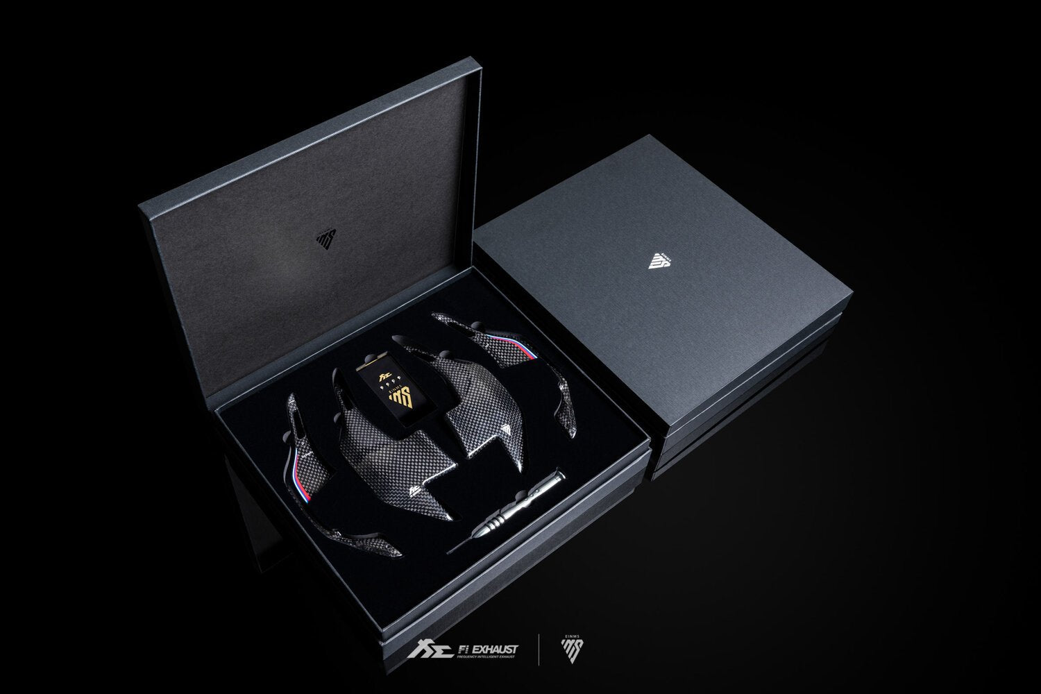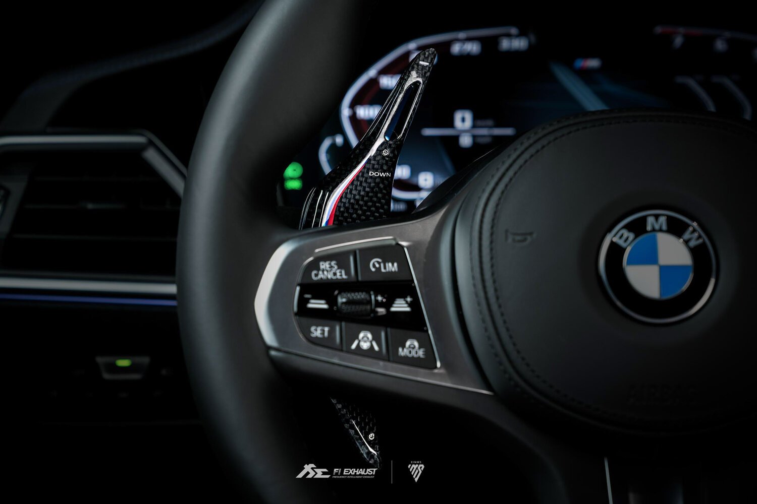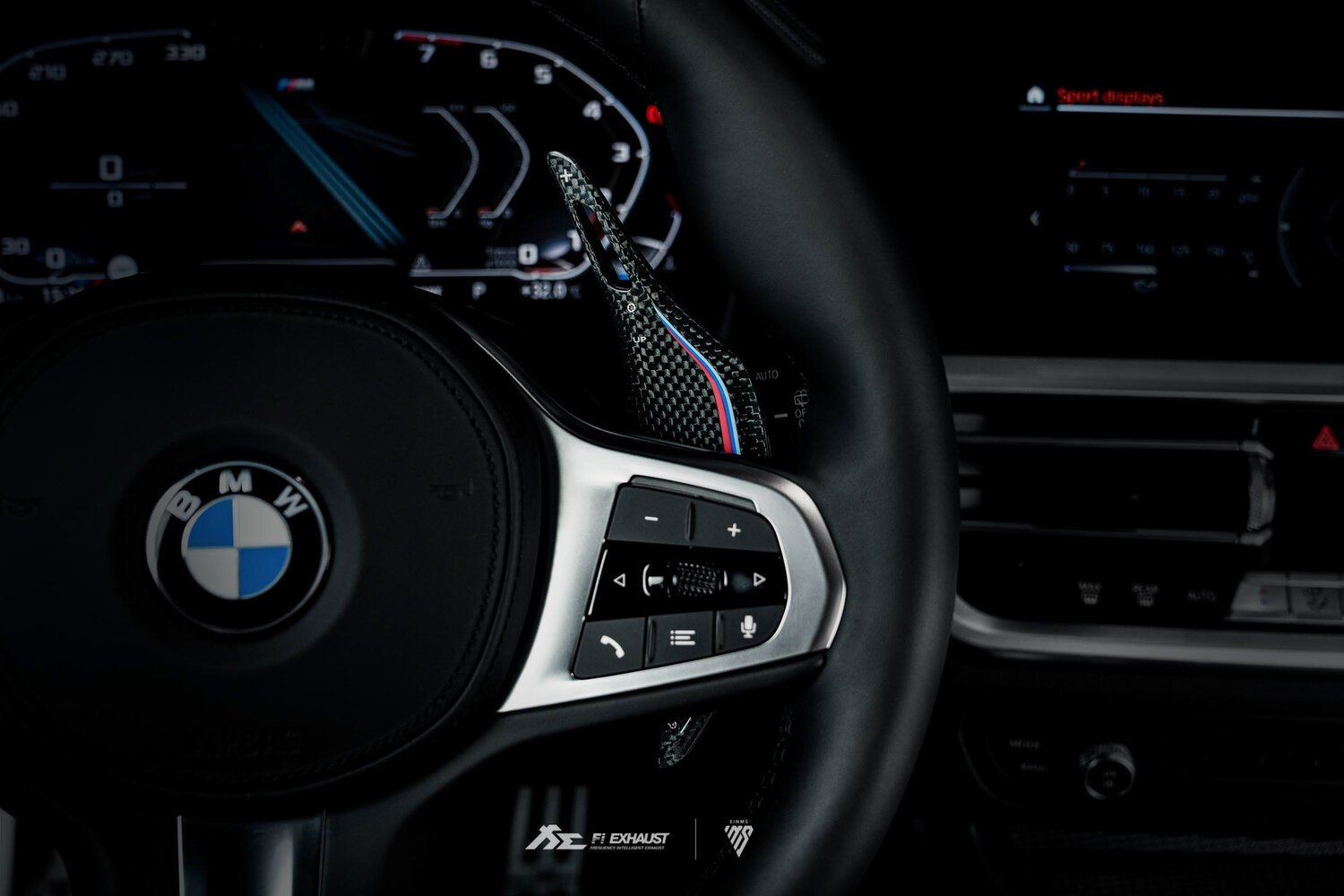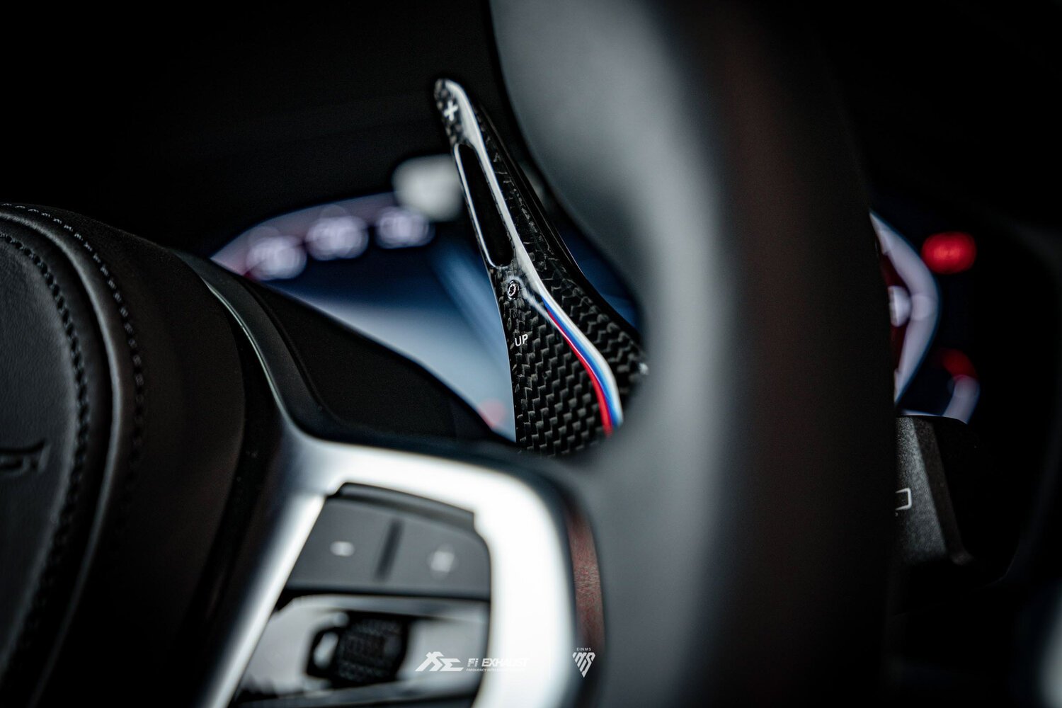Experience more fun and responsiveness when upshifting or downshifting with BMW 1K carbon fiber paddle shifters in diamond black with M Performance tri-color stripes. Safely change gears without your hands ever leaving the steering wheel. Paddle shifters have been extended by 40% compared to OEM for better reach and control. Designed with 100% bolt-on fitment covering the stock paddle shifters. Installation requires less than 60 seconds in order to improve interior aesthetic. The paddles are held together by a tape. The screws attached to the front and back parts of the paddles are mainly decorative. The paddles are designed so that there's a gap between the front and back of the paddles. Please be mindful of this before completing the purchase. The paddle shifters are compatible with BMW G Series car models, for example, BMW G20 /G21 320i/ 330i / M340i Coupe / Touring models. Developed in collaboration with EINMS aftermarket automotive performance accessory company.