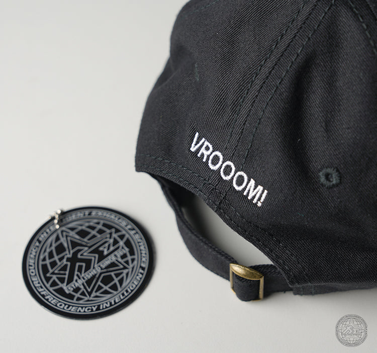 Fi EXHAUST black dad cap has a relaxed fit and sits comfortably. The size can be adjusted with a strap at the back. And we never leave for a car meet without it. The front has an Fi logo embroidered and the back says VROOOM! Because we like to go fast and seek enjoyment in every moment of our life. Materials: Cotton Strap: Tuck Strap with a Slide