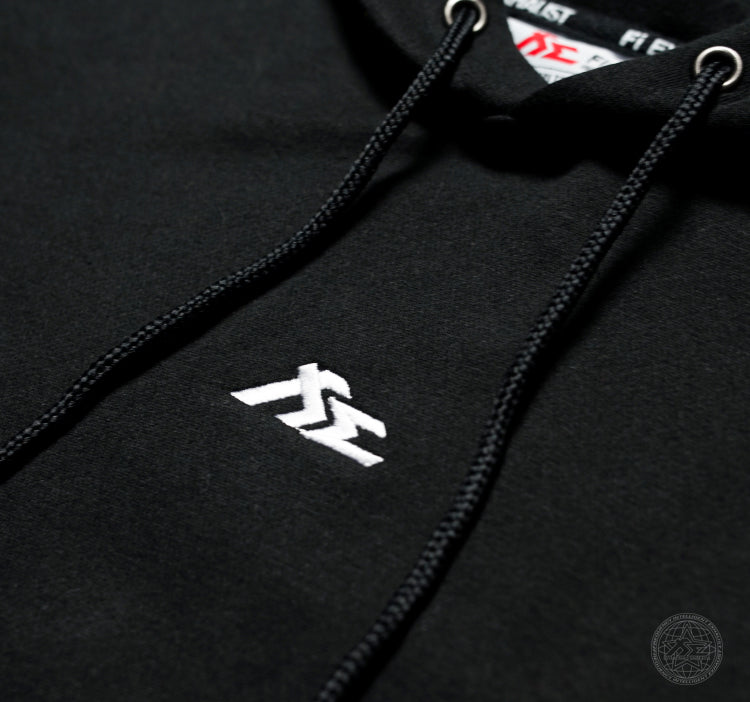 Fi EXHAUST hoodie is made with simplicity and comfort in mind. This hoodie has a comfortable and regular fit without being too baggy. It's made out of cotton blend with a soft inside providing more warmth during colder weather. The hoodie is with a drawstring hood, long sleeves and a kangaroo pocket. Fi minimal design logo in white is embroidered on the chest and sleeve. Fi EXHAUST authenticity logo patches are stitched on the lower cuff and left hip.